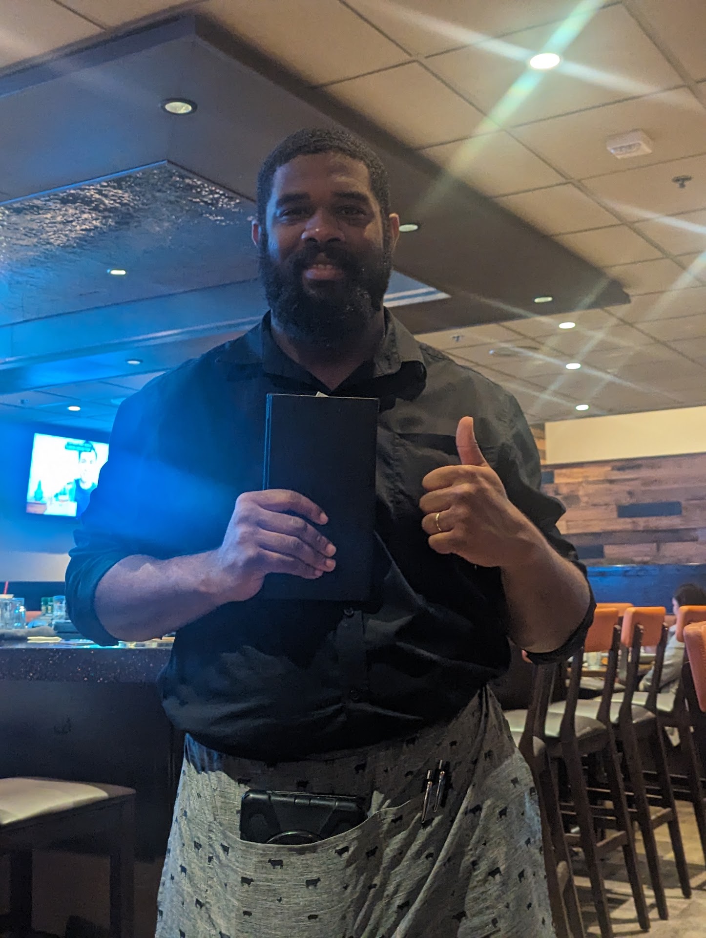Read moreOk, so most of the time my reviews have pictures of the food and they seem to get a great deal of attention, but this time my focus isn't the food but the service we received and the guy who gave it. The Food was as expected at one of the better locations Outback has in the southeast that I have visited, but the server Dee stood out as one of the best food related customer service experiences not only in a mid line chain restaurant, but even in the high-end dining experiences that we frequent in Major cities. Not only was he one of the friendliest out going servers in a while but he was on his A game with his craft. He was he attentive, outgoing, but also on top of every little detail of the experience. The Food came out and was served with extra butter, cinnamon sugar, sour cream, cheese ect even though we both forgot to ask. When we said thanks we forgot he said well "that's the way I expect it when I'm out so I've got you". Every time he walked by the table he looked over to check and without bothering us he would check for a nod with his thumbs up gesture and a big smile. I also overheard the table next to us talking about the experience they had almost written off outback at another location over and how Dee had turned them around on the chain as a whole, and the table on the other side of us were also commenting on his level of service. When we did engage in conversation with him he was extremely friendly and outgoing...Regardless of the good food I highly recommend anyone seeing this to ask for D to be their server. If this is his norm (and I have a feeling it is) He will make it a good night...