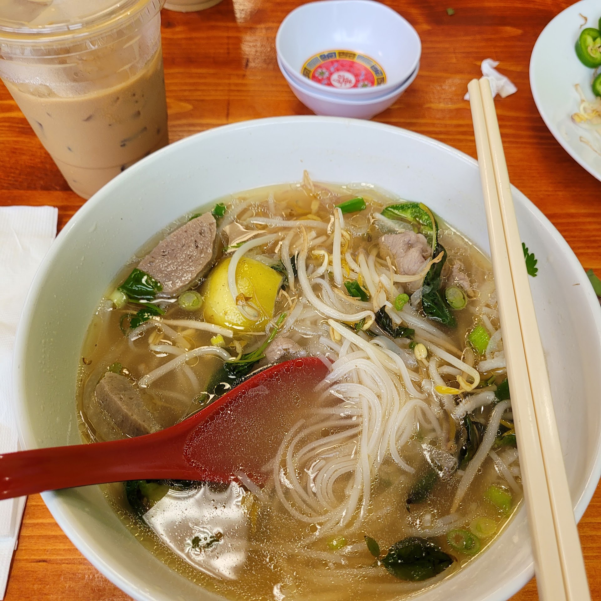 When my food arrived, it looked fine, but the broth was very disappointing. There was one overwhelming seasoning that overpowered the entire dish. I added chili oil, hoping it would balance things out (I usually love adding chili oil to my pho), but that made it worse. The oil had a sour smell, which was concerning.