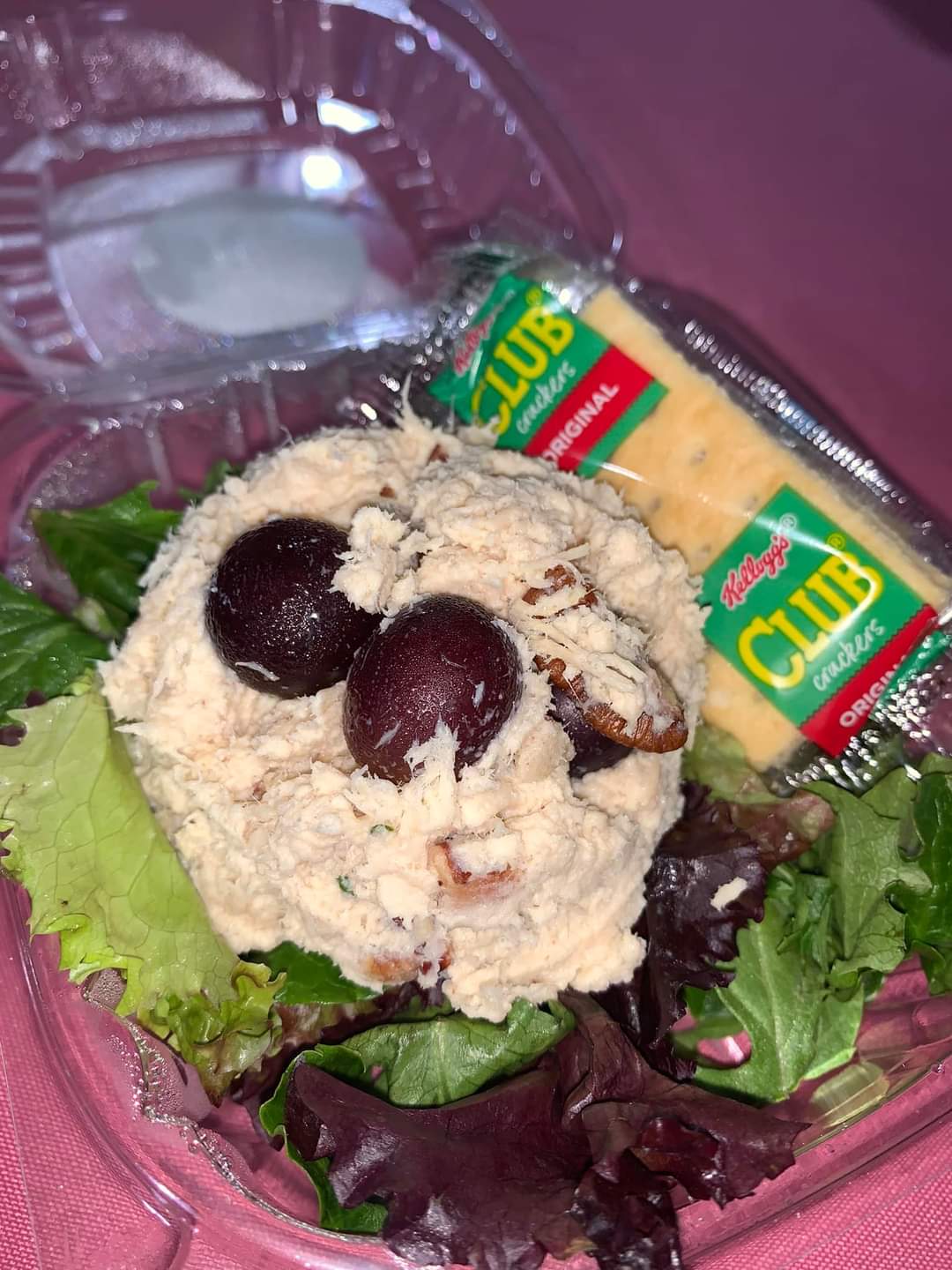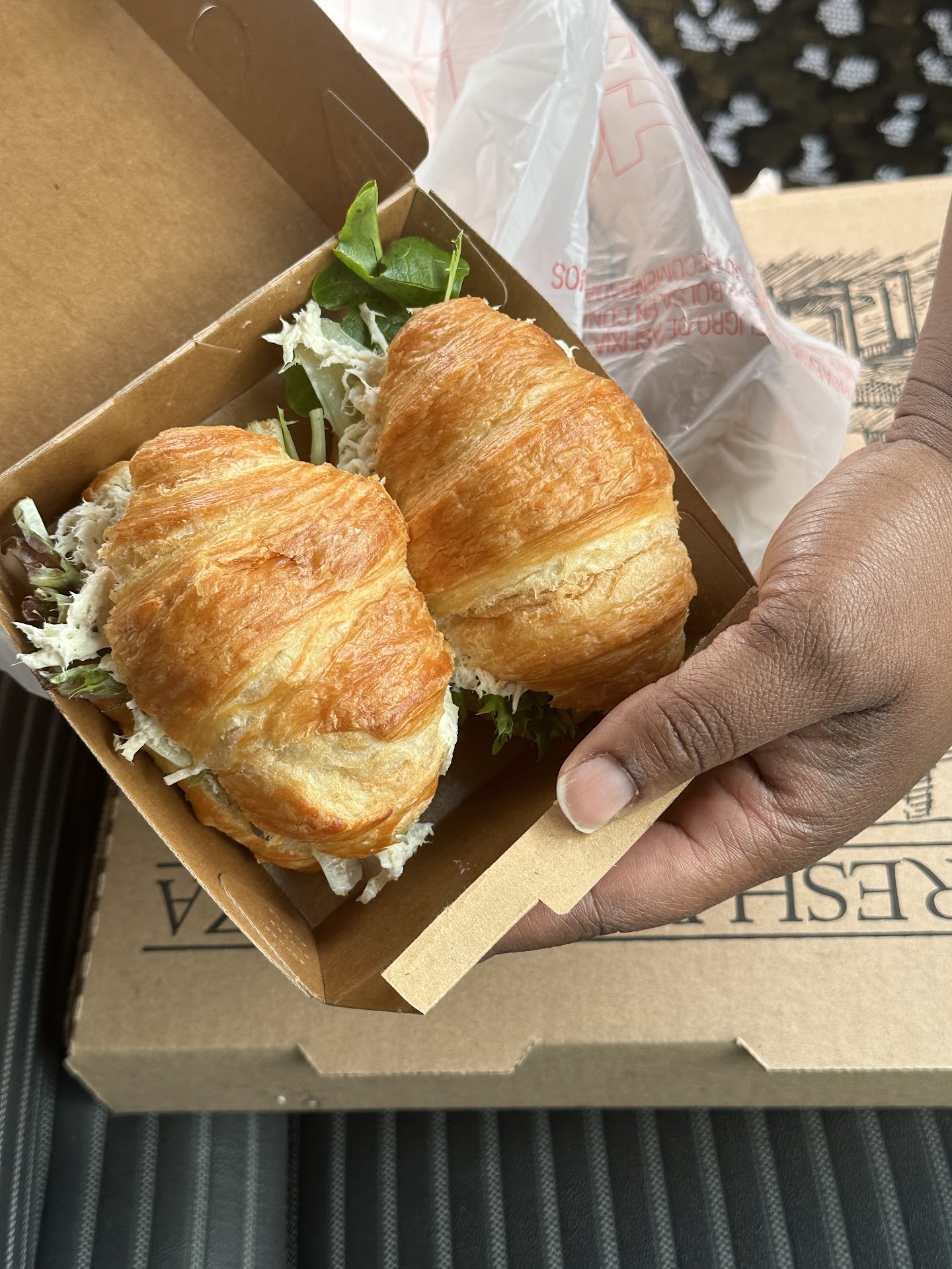 The star of the show was definitely the chicken salad sandwich. I wish I would have gotten two of them. The chicken salad comes on two mini croissants. It was filling, but not heavy. Light but not full of fluff. The chicken was seasoned well, and I loved the addition of grapes and apples. I know I have to bring my mom back just so we can buy a pint of the chicken salad. It is that good. I see why it's popular. They did have a great range of desserts as well. I all my own Bakery and could tell just from looking that the desserts were well prepared and not try. When I go back for a pint of chicken salad, I'll be sure to grab at least a slice of strawberry cake. It looked delicious.