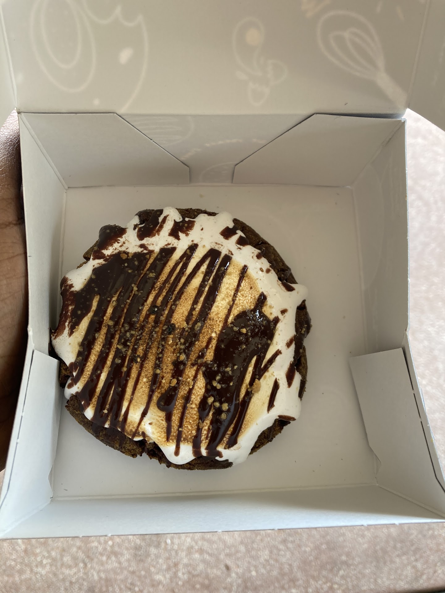 Read moreIf taking the bus, it is not the easiest to find/ a bit of a walk into the plaza. The cookie was good but was a bit too sweet. If in the neighborhood again, I might stop by and try the newest cookie (whatever the season), but I would not go out of the way (traveled about 15 miles 😅) like I did this time to try them out. I recommend the company because they seem decent and cool. Try them at least one time and see for yourself. I did not like that the employee never changed their gloves and they were handling my cookie and new cookies. (I paid with cash, they touched food with dirty money). Hope that is not common there. The employee was friendly enough. I did not know that this location did not have a dine in— so prepare to eat on the go or outside on availability benches. I was willing to pay the price (1 cookie= $5), though the cookie was medium size. At least, it appeared clean inside, from what I...