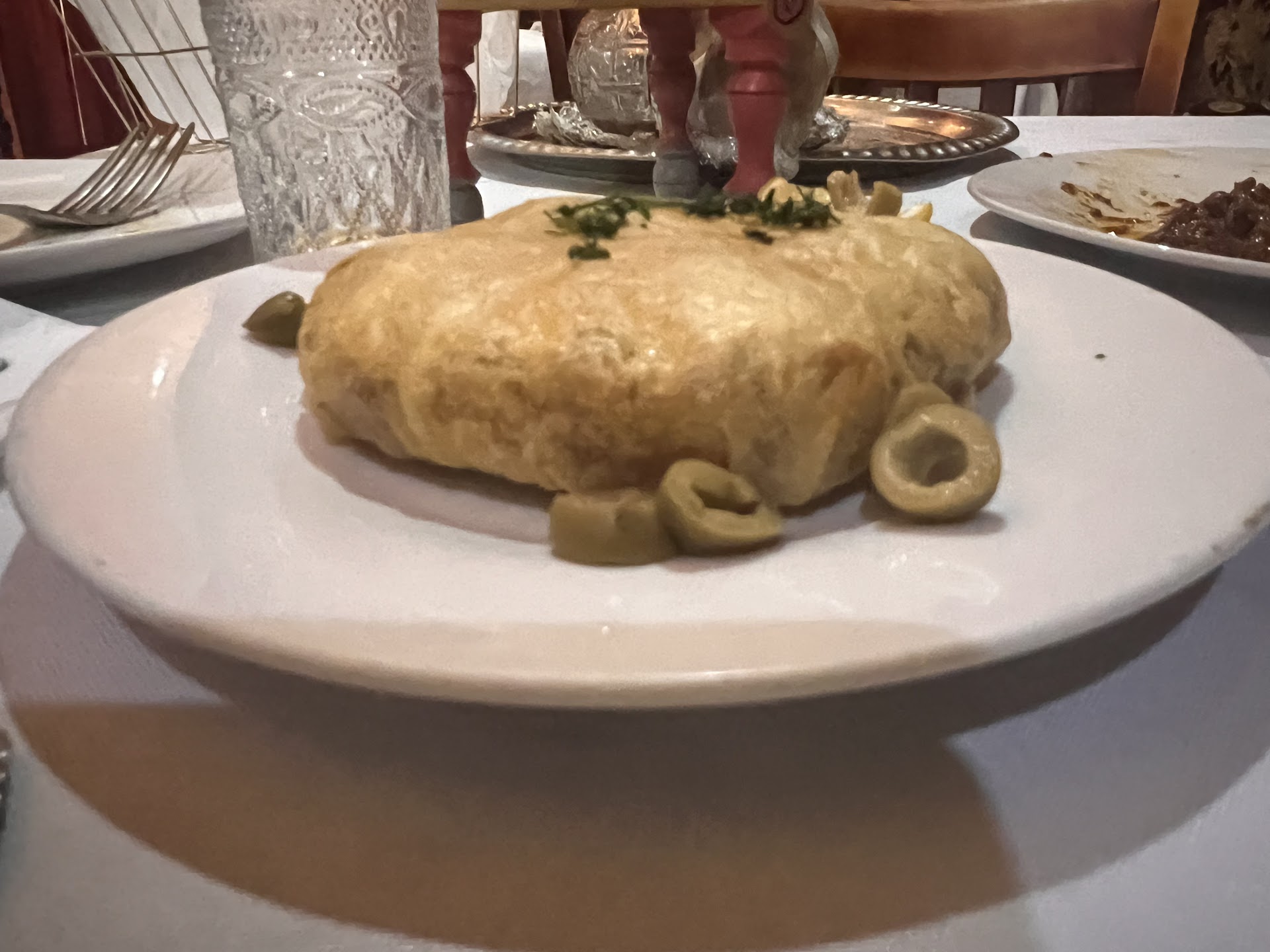 The restaurant was easy to find, and we were greeted as soon as we walked in by, Rasheeda! She took our drink orders after seating as at a corner booth, with posh and elegant throw pillows. The ambiance was comfortable and hospitable. We tried an eggplant appetizer, ordered a medium pot of mint tea and we all had different lamb shank dishes. Mine was with prunes and almonds, my dad had the one with couscous, and my mom had veggies with hers.