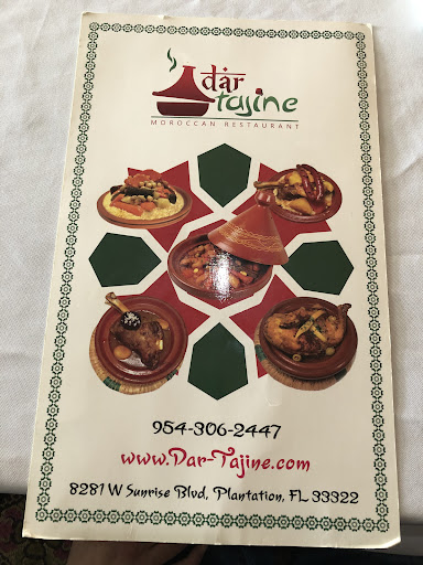 Read moreSo today we set our sites on some Moroccan food and after doing some research I wanted to try family run Dar Tajine Moroccan Restaurant on W Sunrise in Plantation. When we showed up it was closed 😩 even though google said it was open. I decided to call and thankfully a wonderful person answered and let us in early! They were cleaning today and delayed the opening. They could have turned us away but welcomed us in. A beautiful interior awaited us as well with some Moroccan music on the tv screen. A nice change as opposed to places that dont match their restaurant to the native music. We started off with some mint tea and Arabic coffee. Refreshing and interesting flavors. Coffee has a unique taste. Next we tried the Lamb chops with saffron rice and Bastilla ( chicken in a puff pastry with seasonings). The 4 chops were tender and nicely grilled with spices and the saffron rice was tasty. Thankfully not over salted. The Bastilla was shredded chicken mixed with sweet seasonings in a pastry shell topped with almond slivers, powdered sugar and cinnamon. Simple and tasty! Truly thankful for their hospitality and great foold and already planning a return for the...