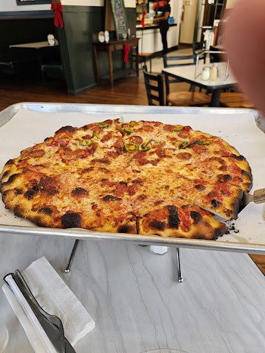 Okay, 3rd time getting a pizza here. If there is a manager reading this, I did many restaurant reviews as a journalist in LA and Key West and I'm a pizza lover. You need to bump up the game to New Haven levels, seriously. It's Saturday night. I order a Special online, go to the restaurant, soon it's ready. That's nice. Fast. Nicer young women helped me. That's nice. I carry the pizza half a block to Carrot Express, get a fresh-squeezed OJ/Carrot juice and sit out at a sidewalk table and dig in to the pizza. It's hot and has that nice pizza smell -- melted cheese, tomato, onion, peppers, sausage, etc. Within a few bites I realize the crust has 4 problems - it's too thick... it's not thin and crispy.... it lacks much flavor, the bottom is semi-burned in various places but worse, there is thick coating of burned corn flour (I assume it's corn flour). I have no desire to eat a lot of burned corn flour -- some of which sticks to my fingers as I lift slices. Topping are abundant - that's nice. Veggies fresh. And the meats ok -- personally I like fresh-ground sausage, not those generic slices now so common, but lacking in any authenticity or good flavor. So mainly I ate the toppings. Cheese not hugely abundant. Tomato sauce rather neutral. (The tomato sauce at Anthony's has a wonderful flavor that yours lacks. I suspect they use imported Italian tomatoes.) So I'm thinking as I drive away after finishing the top of the pizza, "I won't go there again unless I'm in New Haven." I recall the problem you had with a horrible review by ONe-Bite Dave.... then he came back and said it was much better. Well, I've gone there over at least a year's time -- just a few times. I've never. had a thin crispy "new haven" crust.... Google AI says New Haven style is : "a thin, coal-fired crust, a sweet, herby sauce, and a light, crispy texture, often featuring a char from the high-heat baking..." Okay, light and crispy the crust was not. More like heavy, chewy, and covered with burned corn flour on the bottom... and some "char" too (burned areas). By the way, I have eaten in the restaurant too and it was not a problem due to being in the pizza box for half a block.... Anyway, I'm always so hopeful about having a great pizza when I indulge in one. Anthony's used to be amazing, still quite good with fresh-ground-style sausage, delicious tomato sauce, and a good crust. Magaddino's is true Neapolitan and quite good, in fact VERY good. Sadly when things like Frank Pepe becomes a sort of chain restaurant in a mall of sorts, it loses that magic so often. I encourage you to seek it and bump up your game. One can only...