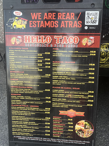 Read moreHello Taco serves authentic mexican street food in a truck in Fort Lauderdale. Their menu includes tacos, burritos, quesadillas, and more. They also have deals throughout the week depending on the day ($10 for 4 tacos on Tuesdays for example).