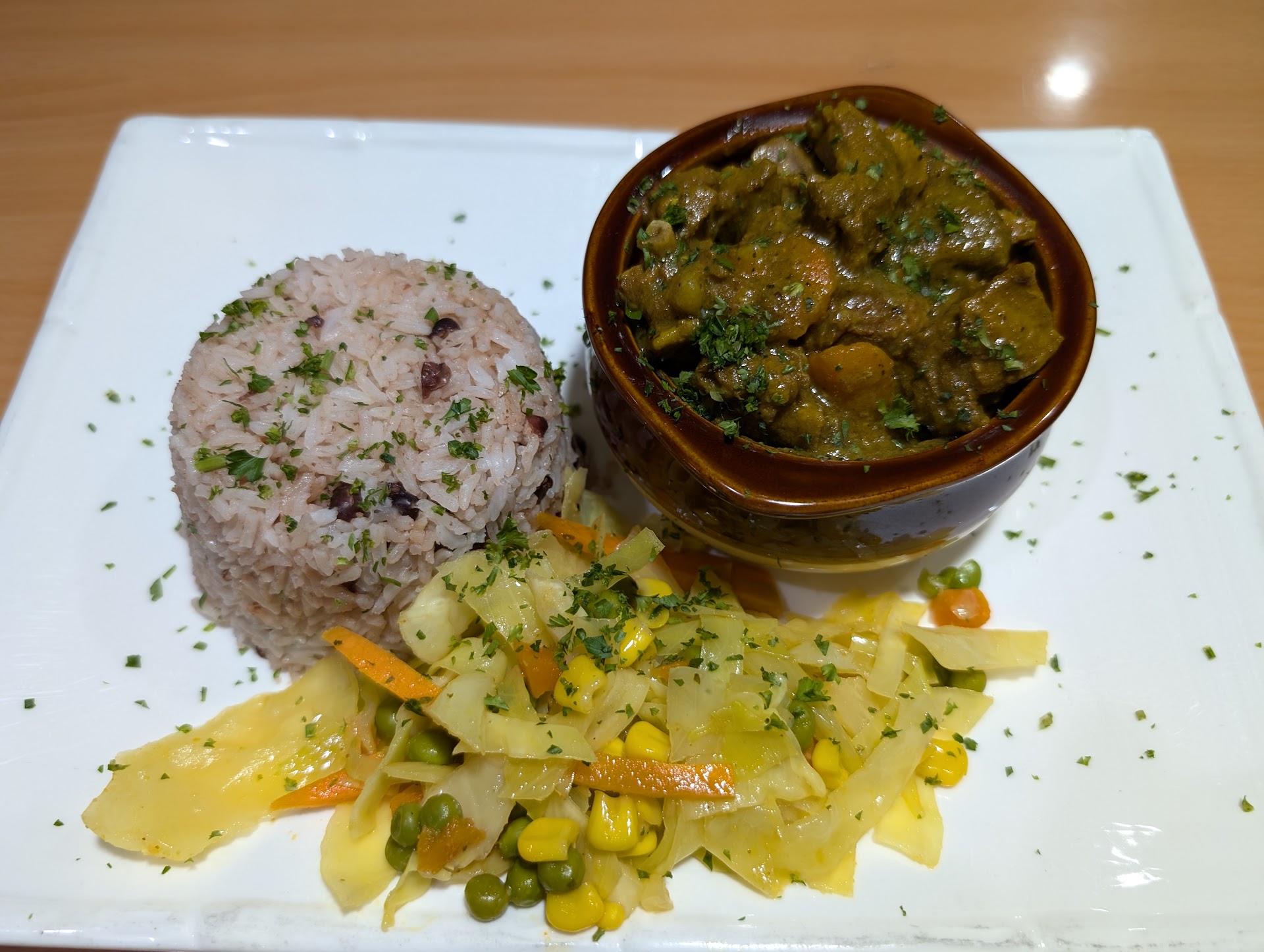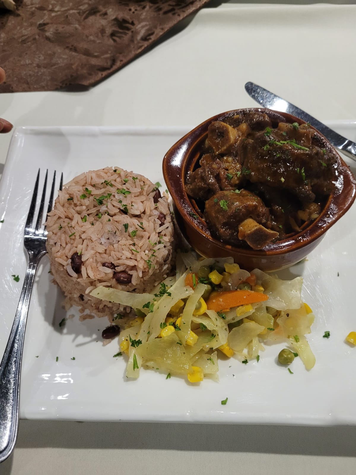 may be because it was the weekend after New years Eve, but it was a Saturday night, and it was DEAD... The drinks my friend and ordered were WEAK. andxwhen I asked why I was offered an additional shot for $10. and it was half the size of a real regulations shot... laughable, and sad 😔 we had the saltfish on breadfruit and tostones, saltfish was way too salty, I can't remember what entree I ordered now because it was so underwhelming. Don't get me wrong, it tastes okay, but obviously, it was just a run of the mill... oh yes, I remember now it was grilled lambchops.. it took forever to come out and my friends' food was cold when it arrived because they brought them out together. BUT THE DRINKS 🍸 SOOO WRONG to charge top-tier prices when you're only getting bottom shelf stuff. I will say the DJ was on 🔥! he was spinning all the good stuff. So, bottom line is: get your eats and drink on someplace else and then go there for the music 🎶 on Saturday night. The server claims she never saw Saturday night, so dead before, and attributed it to the post holiday doldrums. She also said karaoke night is a good night, I think...
