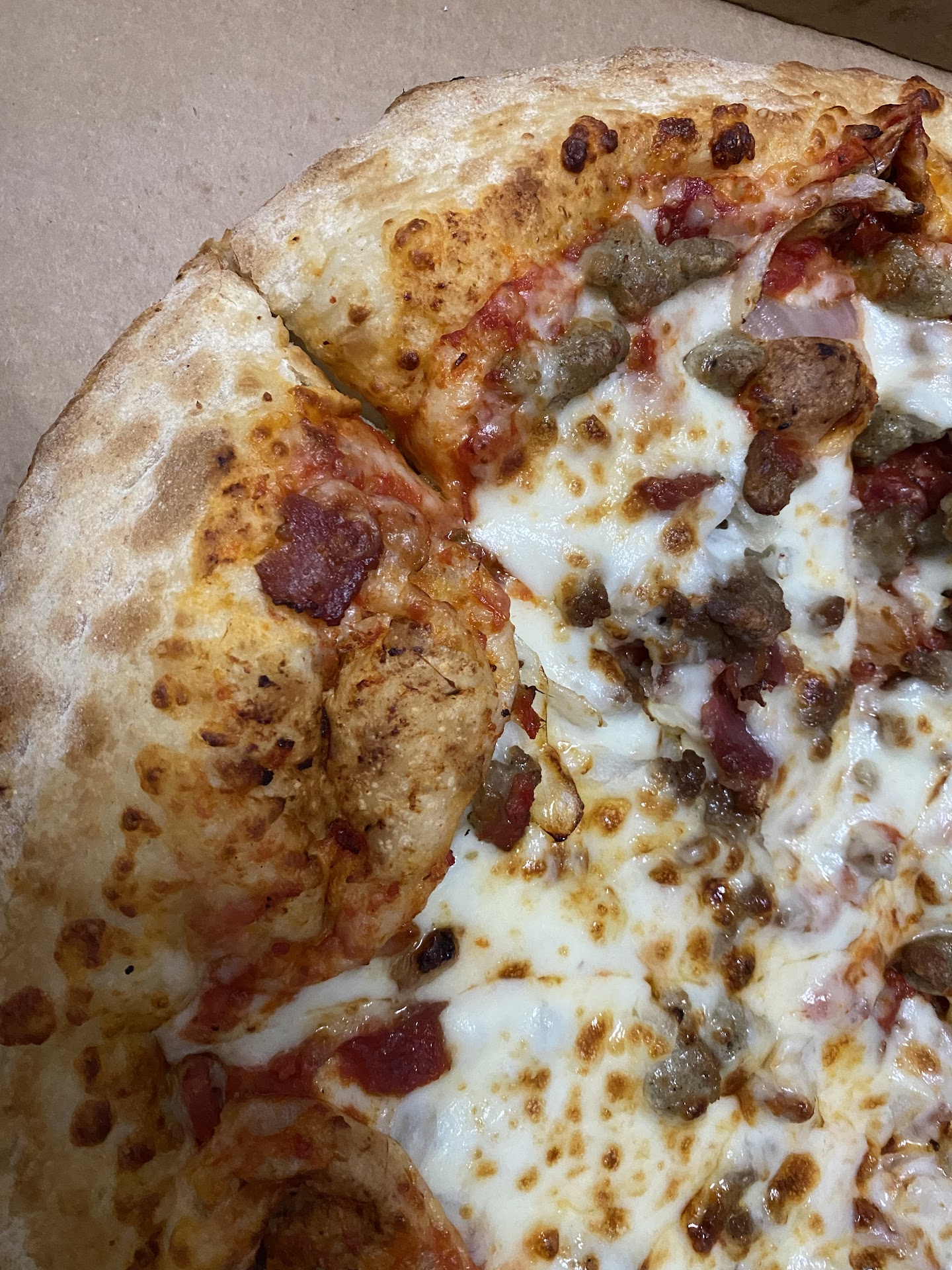 Read moreThe pizza was made half and half one half had the majority of the toppings the other half barely had any toppings, spots on the pizza didn’t have any toppings at all the dough got inflated and that’s how they sent it to me very disappointed……