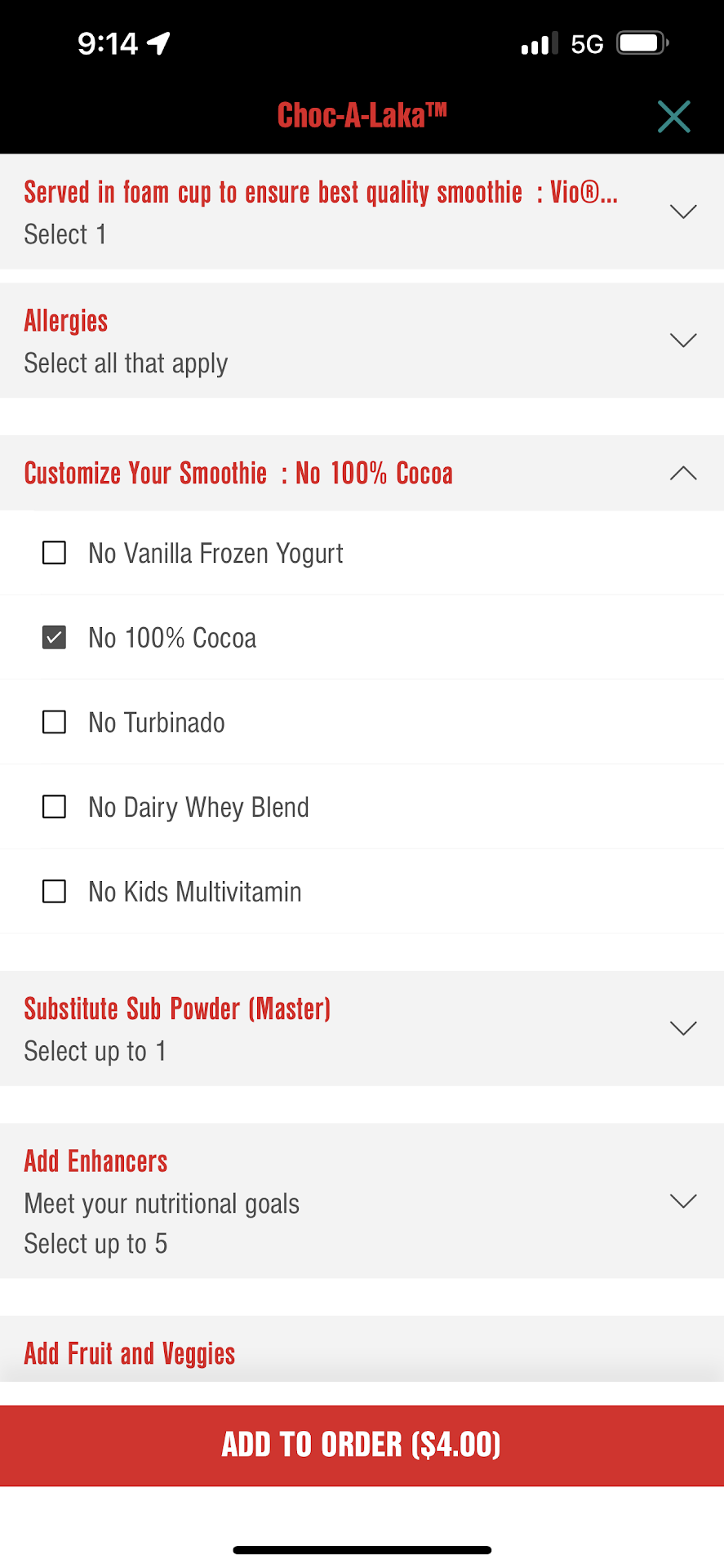 Ā Ā Ā Read moreLiterally the 1st time I've had to call the police on a store. Made the smoothies but then failed to label which enhancer was in what smoothie. The guy told me that the manager would normally taste them to tell the difference but the manager wasn't there & he would try. Normally I wouldn't care but one had caffeine & I didn't want to take the chance of being up all night. So I told the employee that he'd either need to remake it or give me a refund.