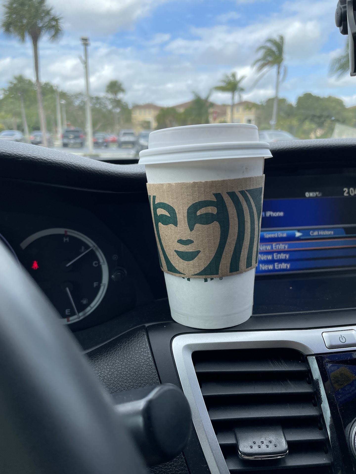 Read moreOn 2/14/24 i waited in line at the drive thru at the 120 S Pine Island Road, Plantation Fl 33324 location. I got a medium hot coffee. I was handed a hot coffee with 2 cups. Without being told so. Also there was a sleeve on the second cup. After driving for a bit I took a sip and the hot coffee spilled all over my shirt, pants and car. Luckily It didn’t go on my face of bare skin. I was extremely extremely upset. Why was I not told that they had double cupped it? The top doesn’t go on whatsoever. It was just sitting on top unsecured due to the second cup.