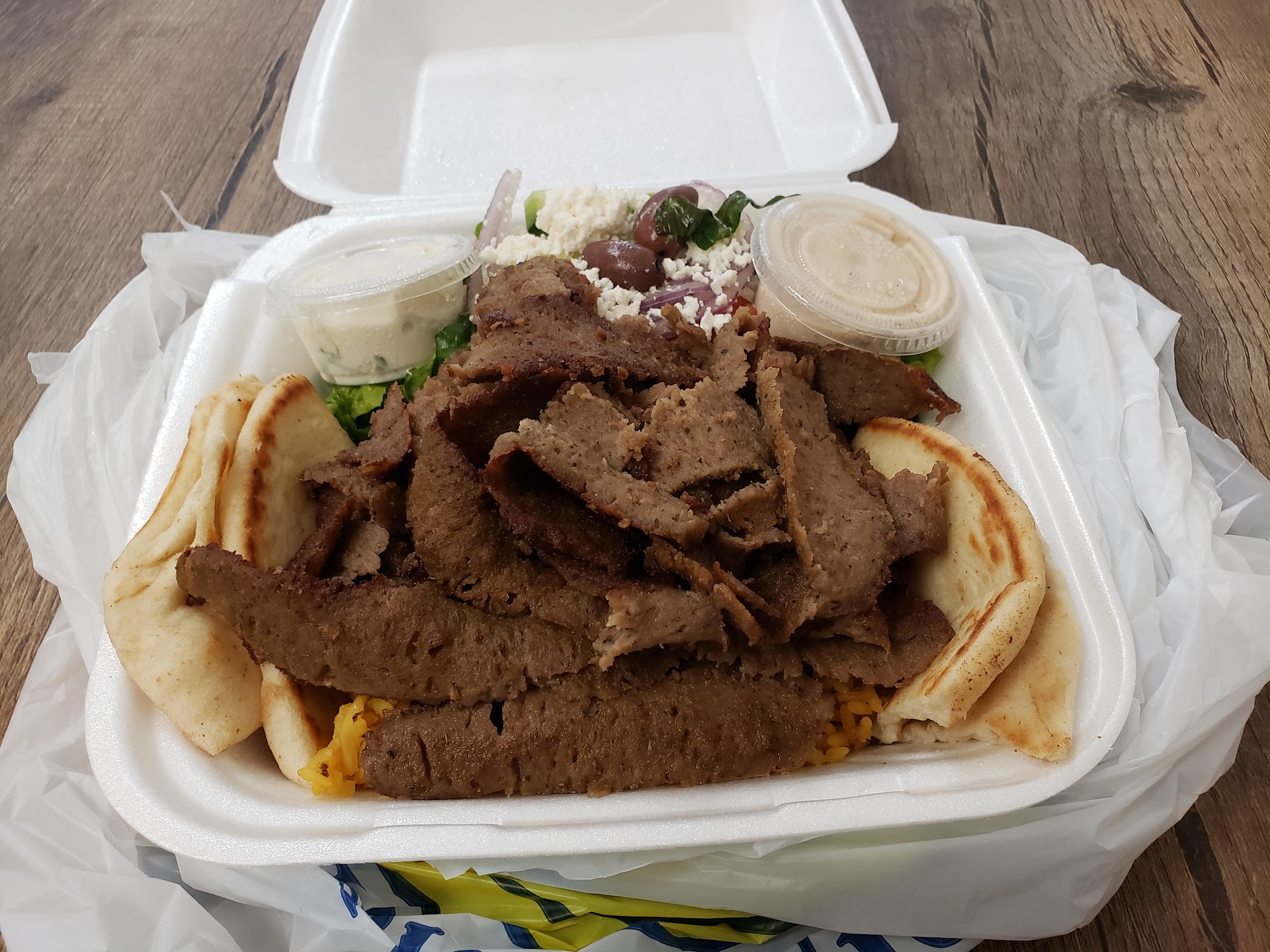 I ordered the Gyro Pita combo with fries, and my husband went for the Gyro platter. Not only were the prices reasonable, but the food was absolutely delicious. The portions were generous—definitely not skimping on anything. The crinkle-cut fries were perfectly crispy and hit the spot just right.