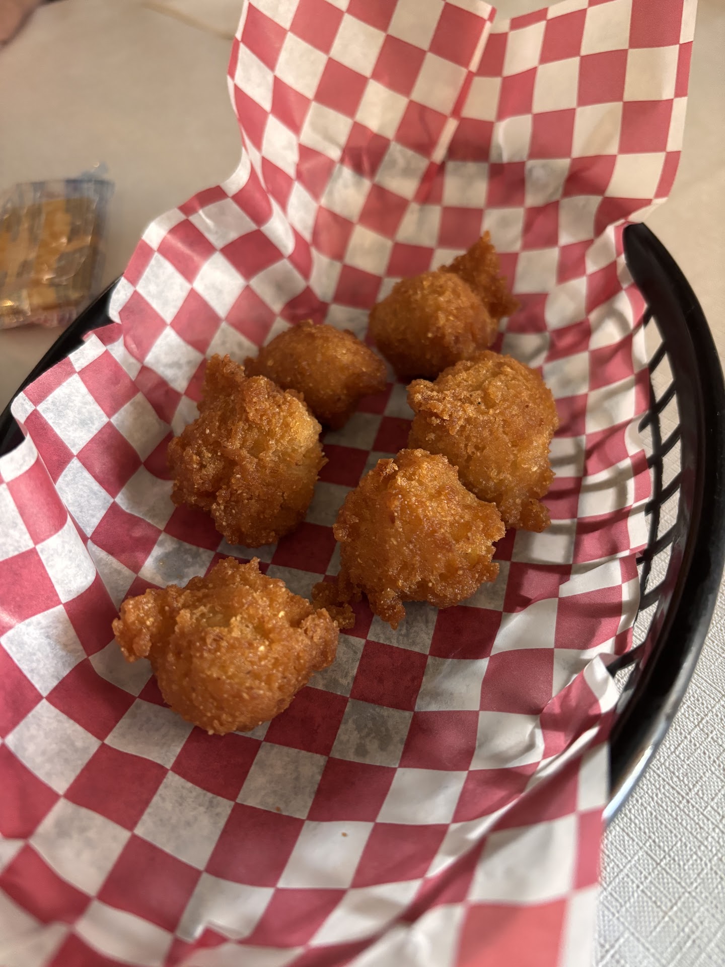 This place is absolutely amazing! My parents were visiting from out of town and my husband and I took them to some tourist spots in Tupelo and decided to stop here on the way home since we prefer local/non-chain restaurants best. We were there soon after they opened and people were already starting to pile in for dinner (always a good sign). Our waitress was prompt and so sweet and welcoming! My dad and husband loved the complementary hush puppies! My mom loved the grilled Cajun catfish and greens! My dad and I had steaks and we loved them both! I have a gluten allergy and usually have a hard time going out to eat but the cooks and waitress were so accommodating and caring with my requests and needs!!! They really took the time to make sure I was taken care of and everything tasted great!! My bone-in sirloin was so juicy and the baked sweet potatoes I had were incredible!! Simple yet absolutely delicious food and awesome staff!! Thank you for such a great meal!! I can't wait to go back!!! I have definitely found my new favorite...
