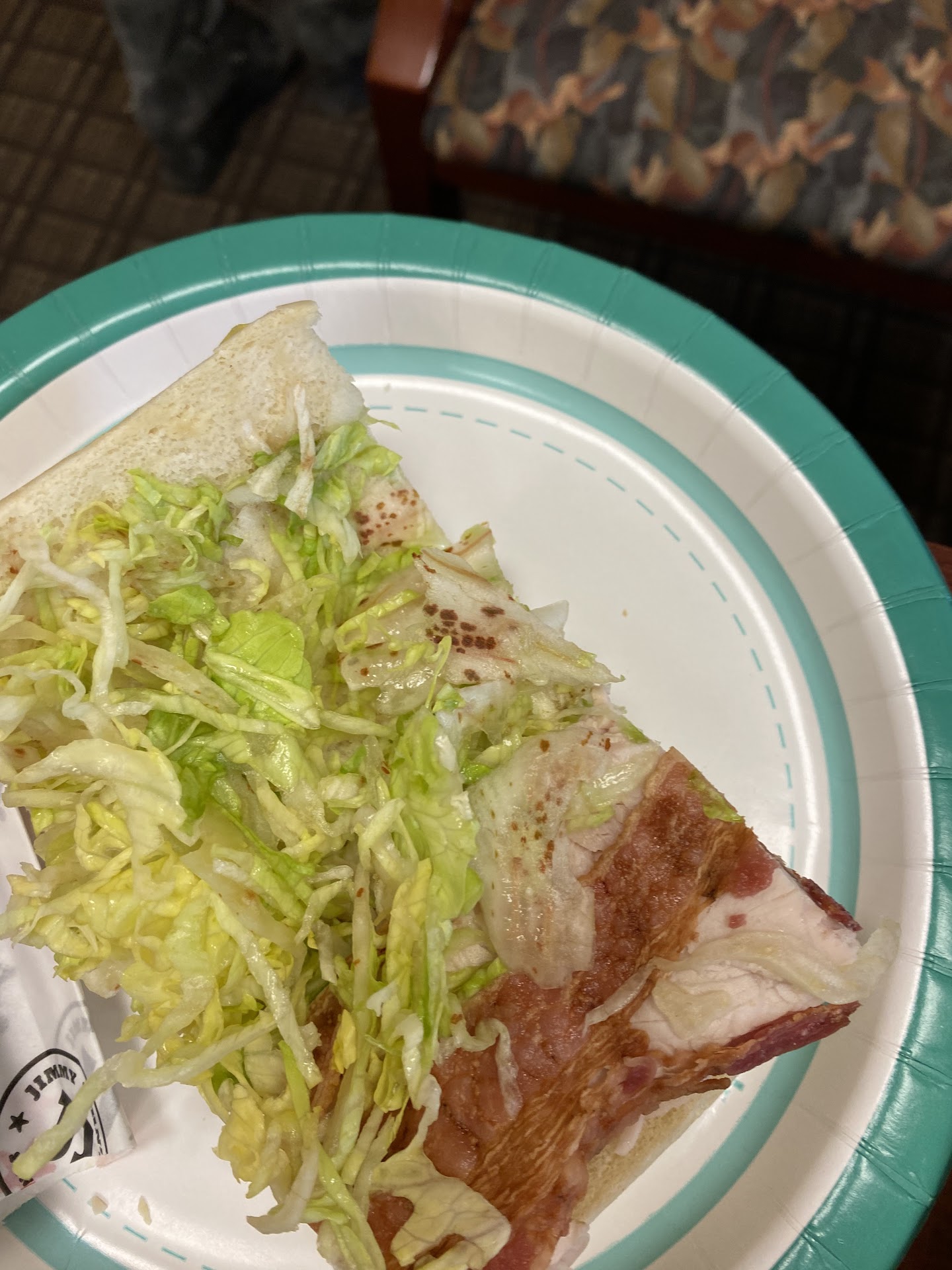 I walked in a little after 1p and waited at the counter for a bit. One of the 3 workers then acknowledged me and said it would be a moment. No problem, I could see there were drive through orders. Waited for her to finish the sandwich she was on, then refill the lettuce bin. A little while later she proceeded to the kiosk to ask what I'd like, so I ordered my sandwich. Rather than ring me up she walked back over to the sandwich bar and started talking with one of the other workers, making another sandwich which I presumed might be mine.