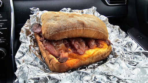 Read moreVery cozy atmosphere, when there aren't a lot of people there. Great Theater Room with darts and an Xbox. Service was fine. The girl behind the counter was pleasant. The food was alright. The Mocha wasn't good. (My wife compared it to a Mocha from Burger King... Not a compliment.) The Bacon, Egg, & Cheese Chibata and the Frassati Franks (Pigs in a Blanket) were both pretty dry, but tasted good. We'll be going back to see if the food improves when it's a different time of day, with a different...