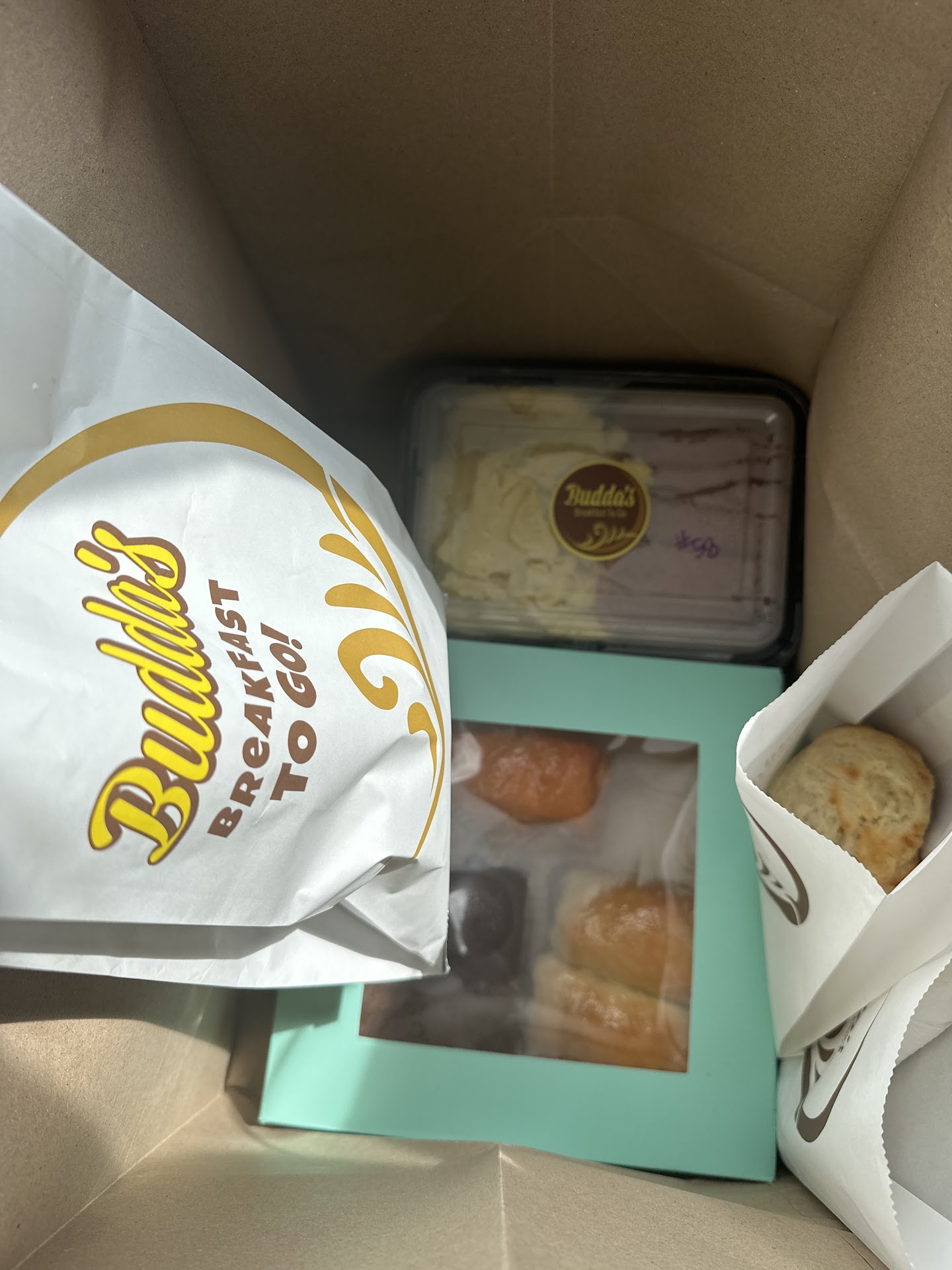 I only heard about this relatively new Utah County gem a couple of weeks ago, and I've already patronized this delicious bakery multiple times. Made with passion and a lot of Islabd spirit and love, Buddahs baked goods live up to the satisfying richness evoked by its name. I met the owner the first time I stepped into Biddahs, and I learned that this bakery is the fulfillment of a long-time dream. I also learned, first hand, of the extra goodness that goes into many of her pastries: browned butter...or should I say, buddah. And boy, howdy, can you taste the difference! Yummy scrumbos times a million...im just sayin'....It's little touches like this that makes this bakery a stand out among many. So far, I've tried all of the varieties of the signature Buddah roll, and I really can''t say which one is my favorite. Most recently, I had the seasonal pumpkin spice roll...so good. I am rather partial to the taro roll as it is such a beautiful purple color. All of these tasty goods are pillowy soft and delicious. I've also had the egg and bacon breakfast sandwich, which was tasty, satisfying, and big enough, in my opinion, to make two meals. But I am known as a serial nibbler, so it might not be the same for regular meal eaters. ;) It's definitely bigger and ten thousand times more delicious than your standard, bland McMuffin. I've also had the coconut danish... mouth watering pastry with a fresh tropical flair, and one of the chocolate chip cookies, which is made with the aforementioned brown butter. For those of you who are wondering if it can make that much of a difference, the answer is he** yeah, baby!!! I dare you to try it and not notice the caramel undertones that will have you picking up the tiny crumbs from the bottom of the bag. As far as customer service, friendly, kind, warm....just what you'd hope to expect from a place called Buddahs. Just the most lovely people delivering 100 + percent. I will be going back again and again. I hope you will too! Local business run with this kind of passion should be at the heart of any town...
