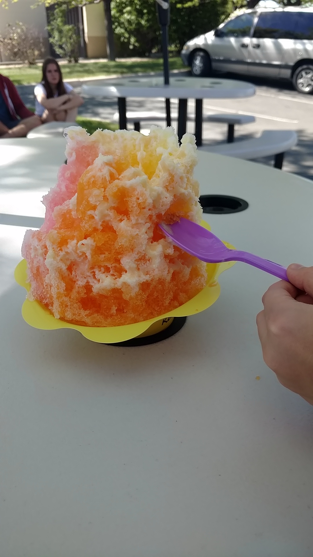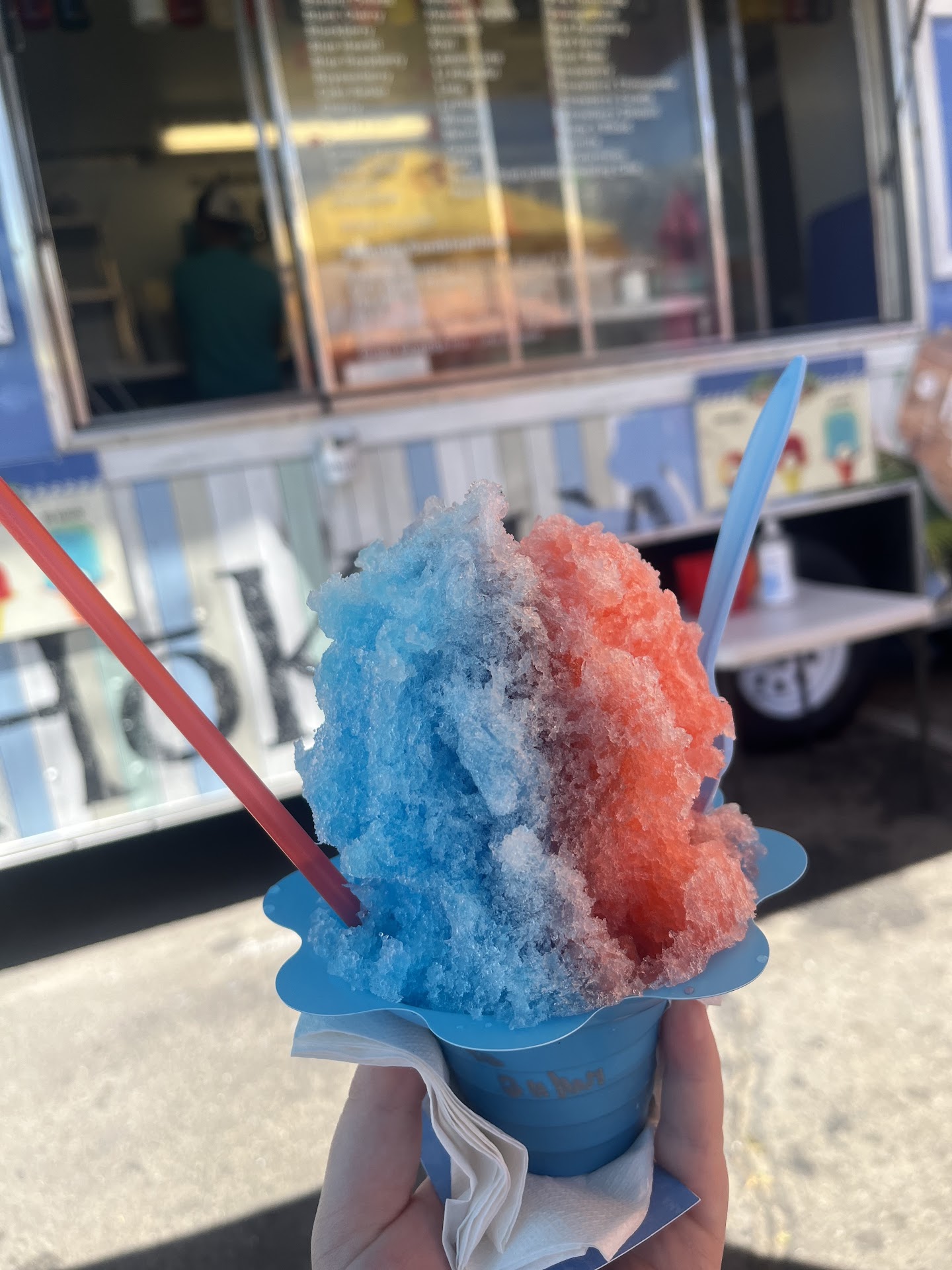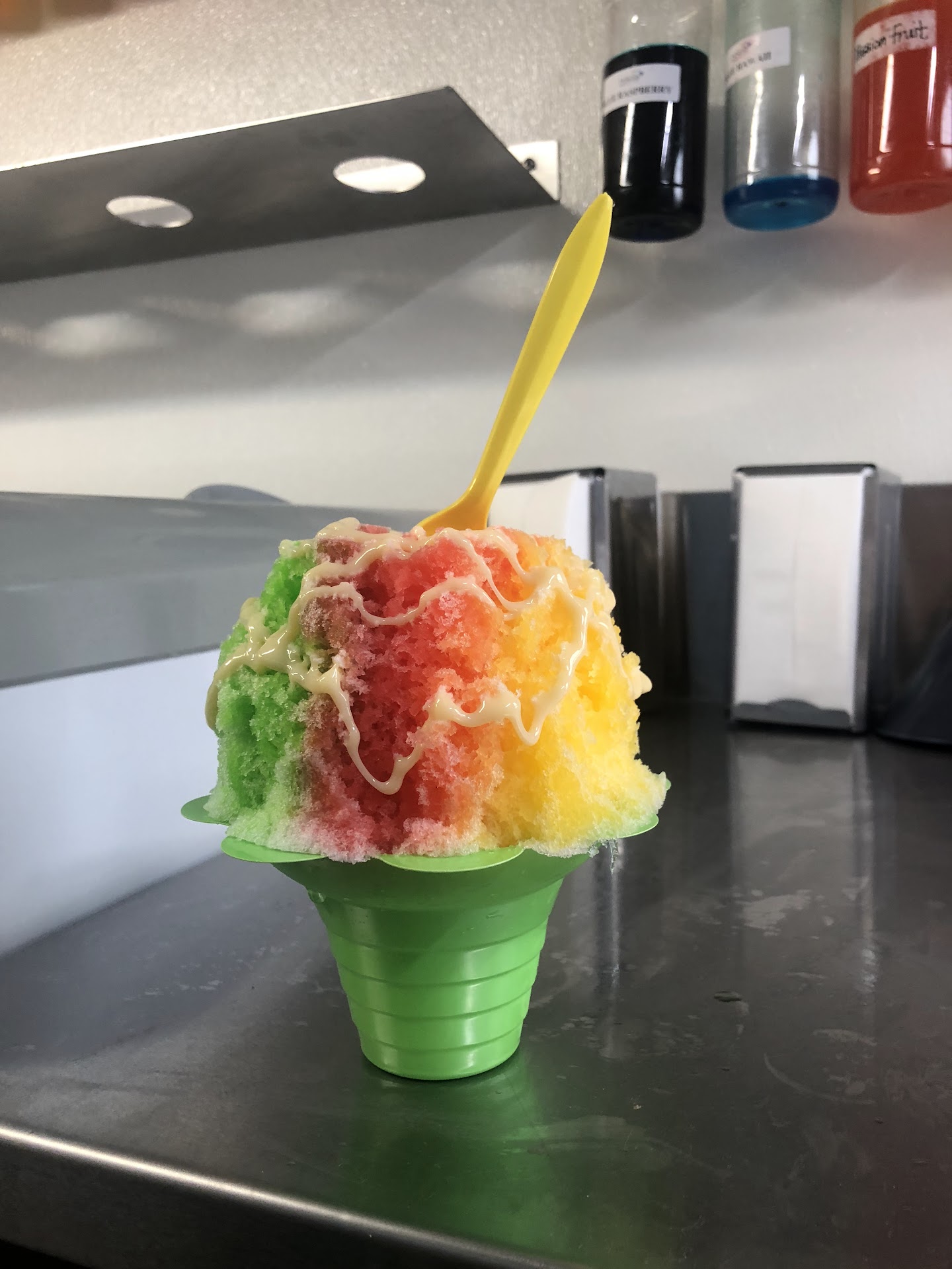 Read moreI don’t think they’ve ever tried to eat their own product. The cups are ridiculous and they pack the ice way too tall and lopsided, it’s a complete mess to eat. Ice and syrup dripped all over my hands when the girl handed it to me. And then with every spoonful of ice, it was falling off all over the place. Not only that, I just returned form Hawaii, and this is nothing like authentic Hawaiian shave ice. This ice is way too chunky, not super fine like it is on the islands. My teeth hurt. Never...
