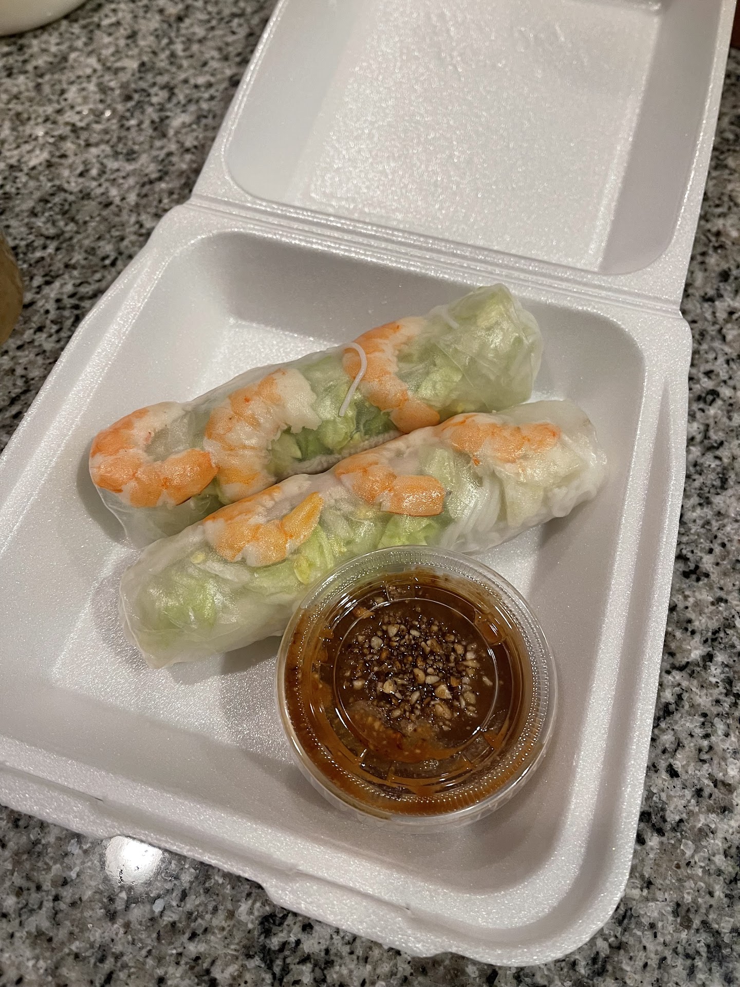 The spring rolls were great. Super fresh. Good quality and the peanut dipping sauce was so good!