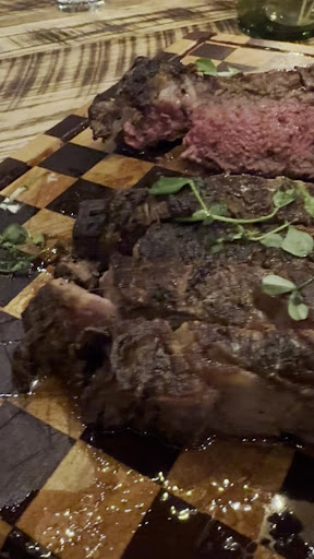 The food. In general, the food was fine but when we paid the $145 check at the end though we were a bit deflated and wondered if it had really been worth that price. We ordered the mushroom toast as an appetizer. It was delicious. We ordered the 12oz Prime Denver Steak and the 8oz Flat Iron steaks along with the potatoes. The potatoes tasted good. The steaks, which totaled around $80 together, were fine but not worth what they cost, in our opinion. I've had a similar quality 8oz from Sizzler. Furthermore, we have literally never sent food back at a restaurant before, but when we ordered both the steaks medium rare and the 12oz steak came out very, very rare inside, we requested it be cooked a little longer. Additionally, both steaks had significant difficult-to-cut gristle (even the steak knives were having problems cutting through it) and the 12oz had a fair amount of fat on it. At the end we ordered the lemon meringue dessert.