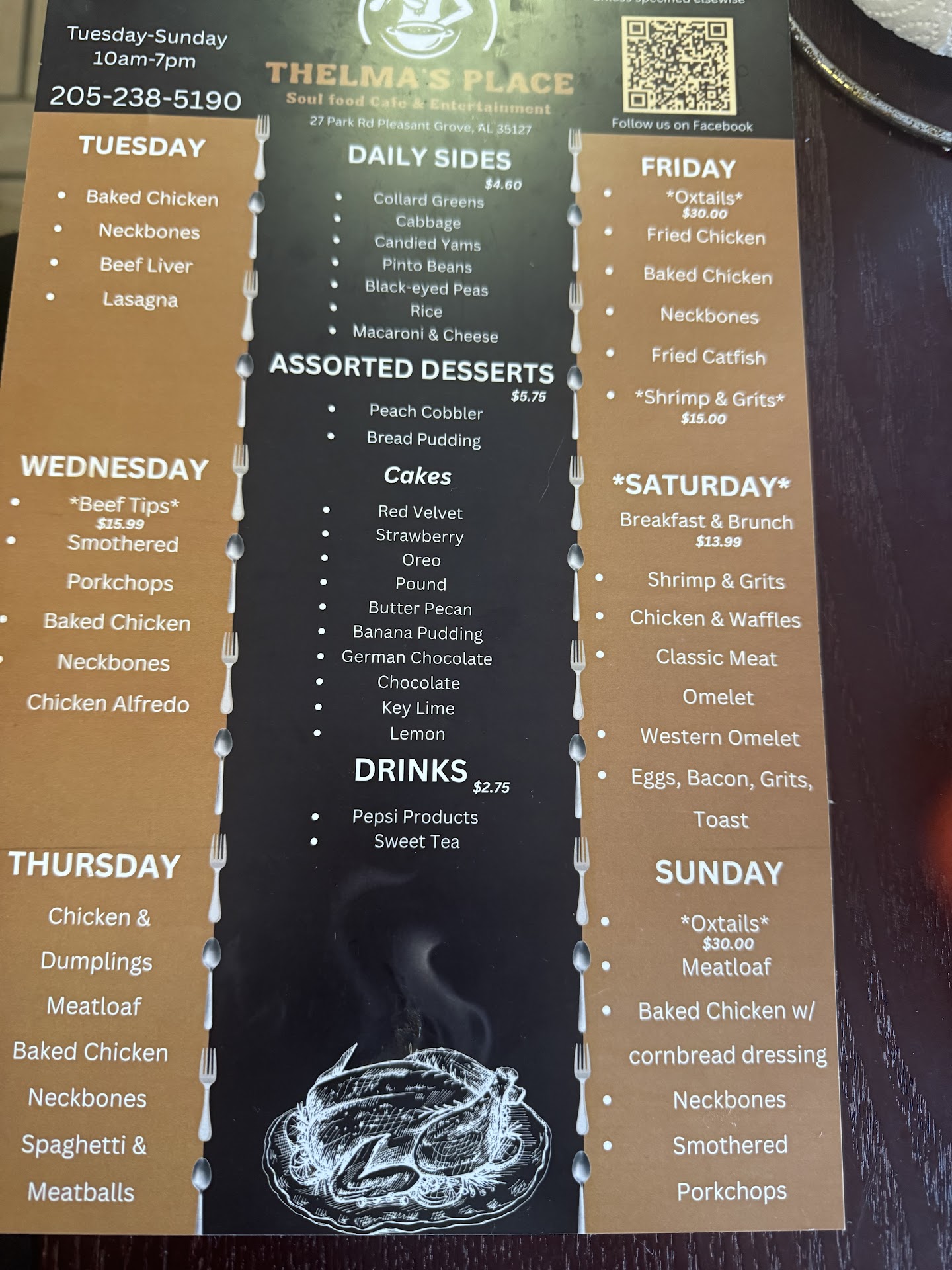 I don't want this business to fail. We lose too many restaurants, so I want it to be better. You HAVE to try harder..... The meatloaf was good, as well as the baked chicken. My wife loved that it was fall off the bone tender, not dry like Hueytowns two cafes.