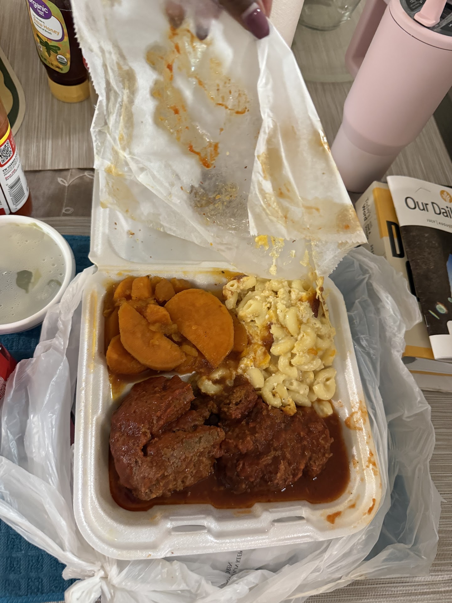 It seemed that the kids were left unattended on my visit on 07/13/2025. I ordered the meatloaf with mac and cheese and greens. The greens were a bit salty but the rest of the meal was alright. My guest that was with me ordered the smothered porkchops and the gravy was apparently being prepared with the wait time of 20 minutes. The service was horrible with the communication between the young staff was almost nonexistent. They were playing, yelling, cussing, and on the phone while customers were waiting to be served in the lobby. The gravy for the "smothered" porkchops wasn't ready and being informed by a customer in the lobby that she waited for 40 minutes for the gravy to be done while we were told it would be an additional 20 minutes for it to be ready. The service was slow and unintentional. It didn't seem like the staff cared about customer service. The environment was chaotic with the noise, playing, and loud talking. I would hate for this business to fail because it would be a great addition to the city but if they continue to carry on as such, it will...