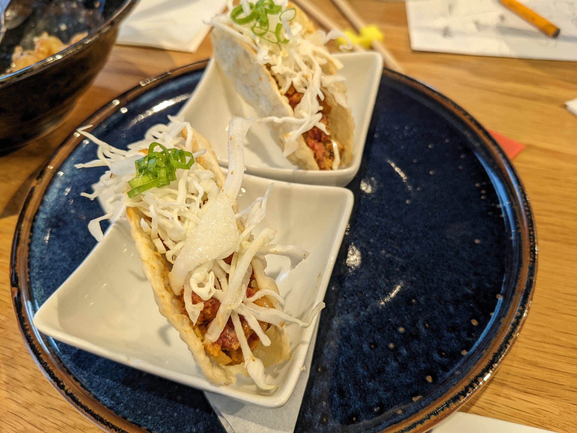The wagyu tacos were a real pleasure. The beef itself was prepared tar tar style and was completely raw. The flavor and texture was extremely enjoyable. The cabbage on top didn't really contribute to the flavor much, but did add good texture. This was the best thing we had at dinner that night.