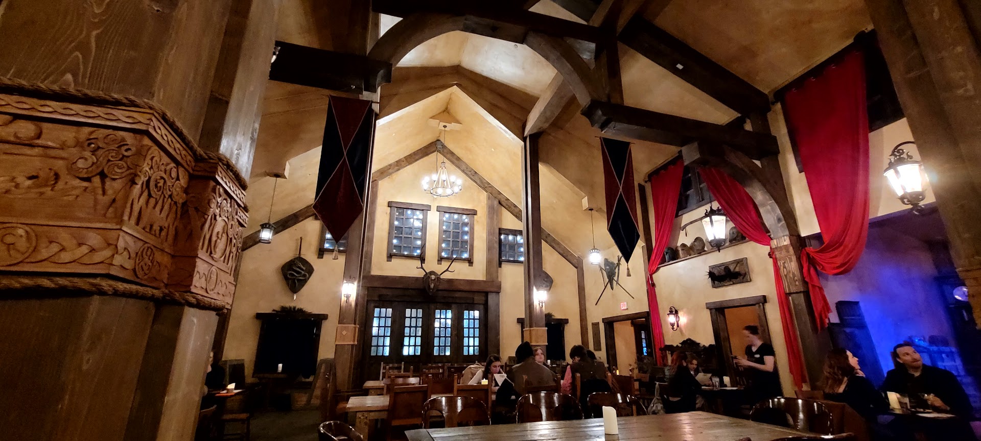 The interior of the restaurant is interesting, well designed and vaguely fun but not reaching it's potential. It's like they had plans when making it but didn't quite finish. Much like Evermore, it's getting there but not really done. The staff is just dressed in normal black staff outfits like any restaurant, so they feel out of place in what seems to be a themed restaurant, it's odd.
