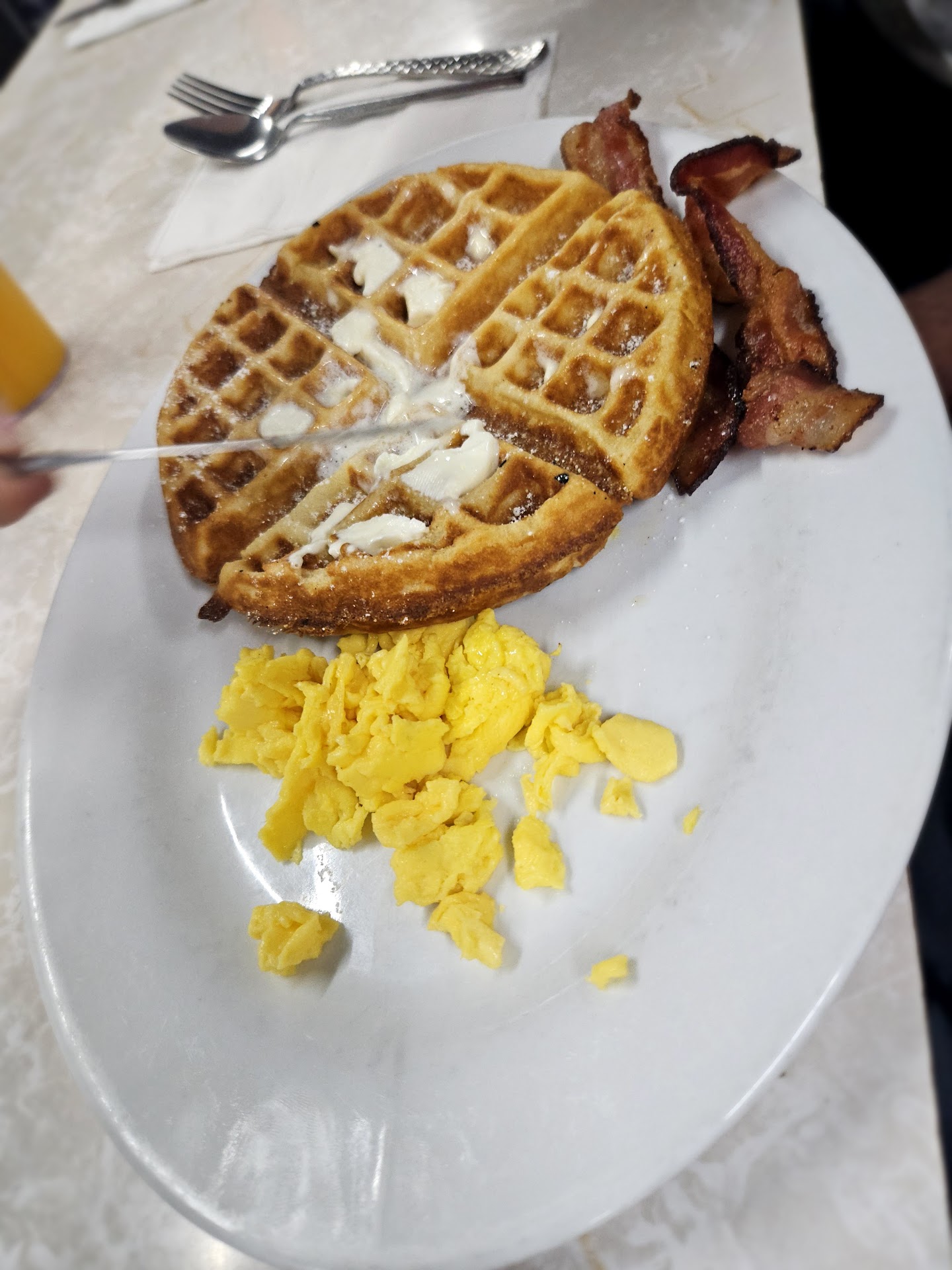 Ā Ā Ā Read moreNice staff and good atmosphere, but the food is lacking. The eggs aren't fresh and sit in a large bottle next to the grill which is squirted out to make your food. The hash browns are, in classic hole-in-the-wall fashion, given what I call the "1 flip is good enough treatment", they're spongy and tasteless. The "butter" used for the toast is orange and tastes like canola oil. I left wondering what I had just put into my body. It sounds harsh, but I hope is taken constructively; I wanted to like the place. But, $10 for a breakfast and you're not even serving fresh eggs or real butter to customers? Seems a little disrespectful if you ask me. Take some pride, ya'll...