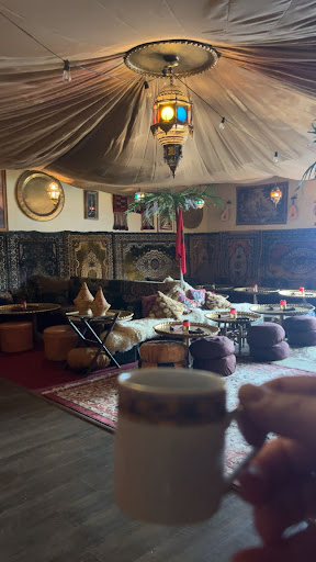 Their coffee was very delicious and made to order. It didn’t need much milk or sugar and was not too bitter which was nice. Moroccans really make good coffee. We ordered a crepe with berries and whipped cream. The crepe was well cooked and the berries and whipped cream paired nicely together. The Bastilla was a phyllo dough stuffed with ground chicken, scrambled eggs, almonds and then topped with powdered sugar. It was crispy and a different texture all together. If I were to order again I would get without the powdered sugar. The Shakshuka was the best. I could’ve ordered a few orders of that. They serve it with some flat bread you use to pick it up and with the egg on top it made it extra delicious. It was a good mix of vegetables and tomatoes and spices and it just all melded well together. Glad we found this place and hope to stop by for dinner and to watch the belly dancer next time we...