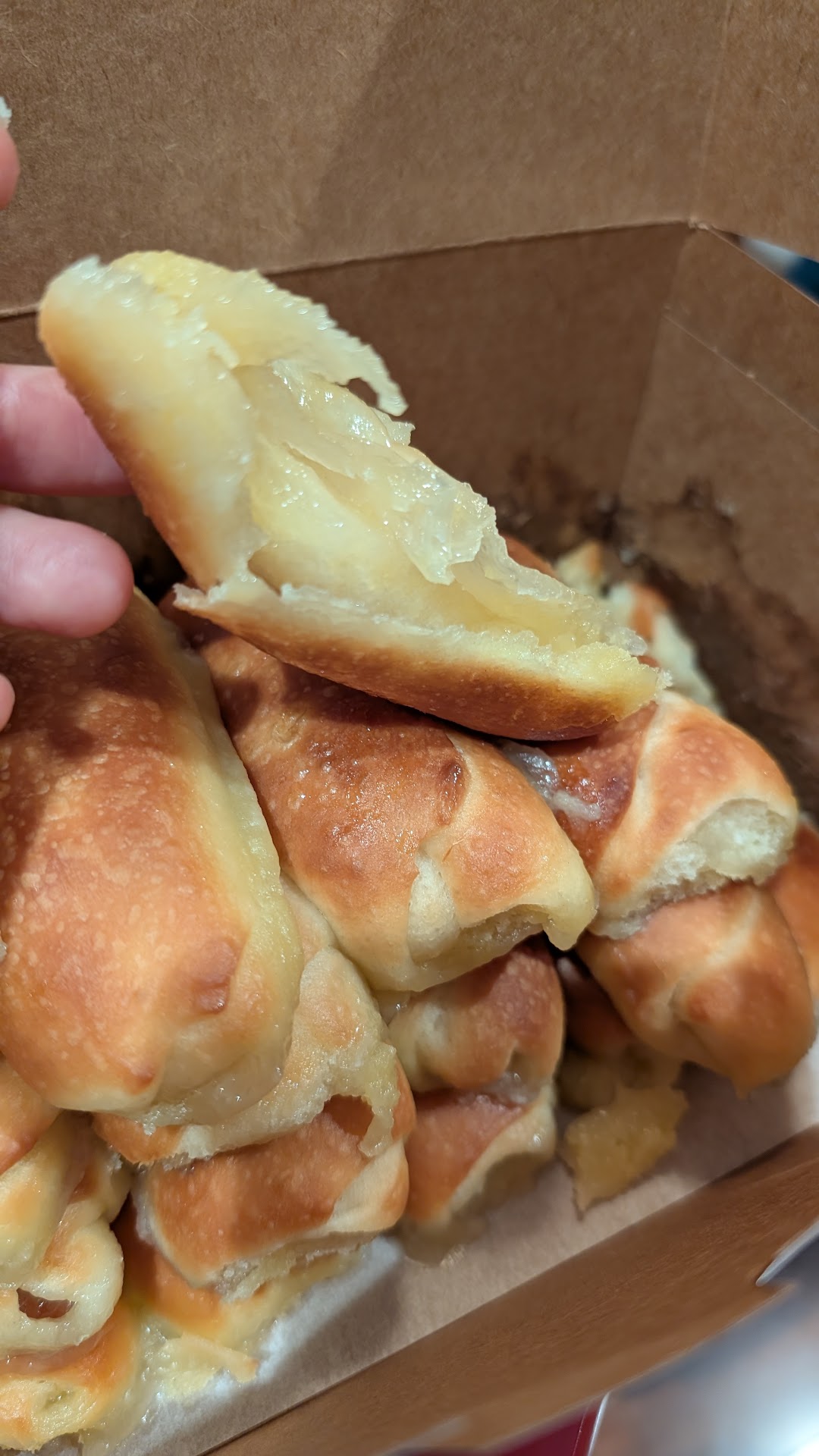 I worried that they may be closed but I was able to walk in at 6:58pm and get a box of bread. It was my first time visiting this location because I used to go to the one in Vallejo. I'm not sure if this is due to the late hour I visited the bakery but the bread was very disappointing. The flavor was similar to what I had in Vallejo except much sweeter. The bread was drenched in so much syrup that it was soaked through the middle and every piece was stuck together so hard that I could not get one out without breaking it. It was also very dense, not airy and soft like the ones from Vallejo maybe because it was so wet. I was happy to find a location closer to home but I might continue to go to Vallejo for starbread if this is...