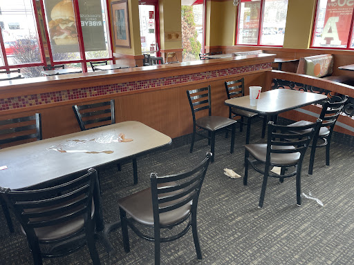 Read moreFilthy - I was there around 1pm on Saturday, March 4th. The only good thing about this visit was the young guy who took our order. He was extremely friendly. We were the only ones in the restaurant and the drive-thru was slow. Once we got our food we had a really hard time finding someplace to sit. Almost all of the tables were dirty. Again, the place was empty. We finally found a table and wiped off the crumbs. 10 minutes later, another couple came in and had the same problem. Very poor management to allow this....