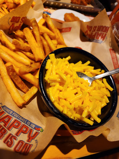 We ordered lunch, waited almost 30 minutes for our appetizer which was delivered by the same gentlemen working the take out. He dropped the app, no plates and still no sweetener. We ordered the loaded boneless wings, which is served on a cast iron hot plate. The queso was not hot, it was kind of congealing, our server was delivering food to one of the FOUR tables she had, she walked right past our table, never asking if we needed anything, if everything was OK, just walked right by. STILL NO SWEETENER! SO, we cut a chicken nugget in half, eating from the serving plate, because our server couldn't be bothered to serve us and provide plates so we could eat like civilized humans, and wouldn't you know it the chicken isn't even warm! Am I surprised? NOPE! Now our challenge is getting someone....anyone ones's attention to speak to because GOD FORBID the server who is overwhelmed by the 4 flipping tables that she's supposed to be providing service to.