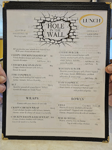 Stopped in to eat and was greeted by kind staff that work at the Hole in the wall. Our server kindly made recommendations and our food was great; served quick, hot, and on point! We had shrimp dinner, chili cheese fries, and an apple blossom (must have for that sweet tooth). Prices are fair and restaurant is clean and has a welcoming atmosphere. Plus I really loved the decor of pictures of various SD treasures! We...