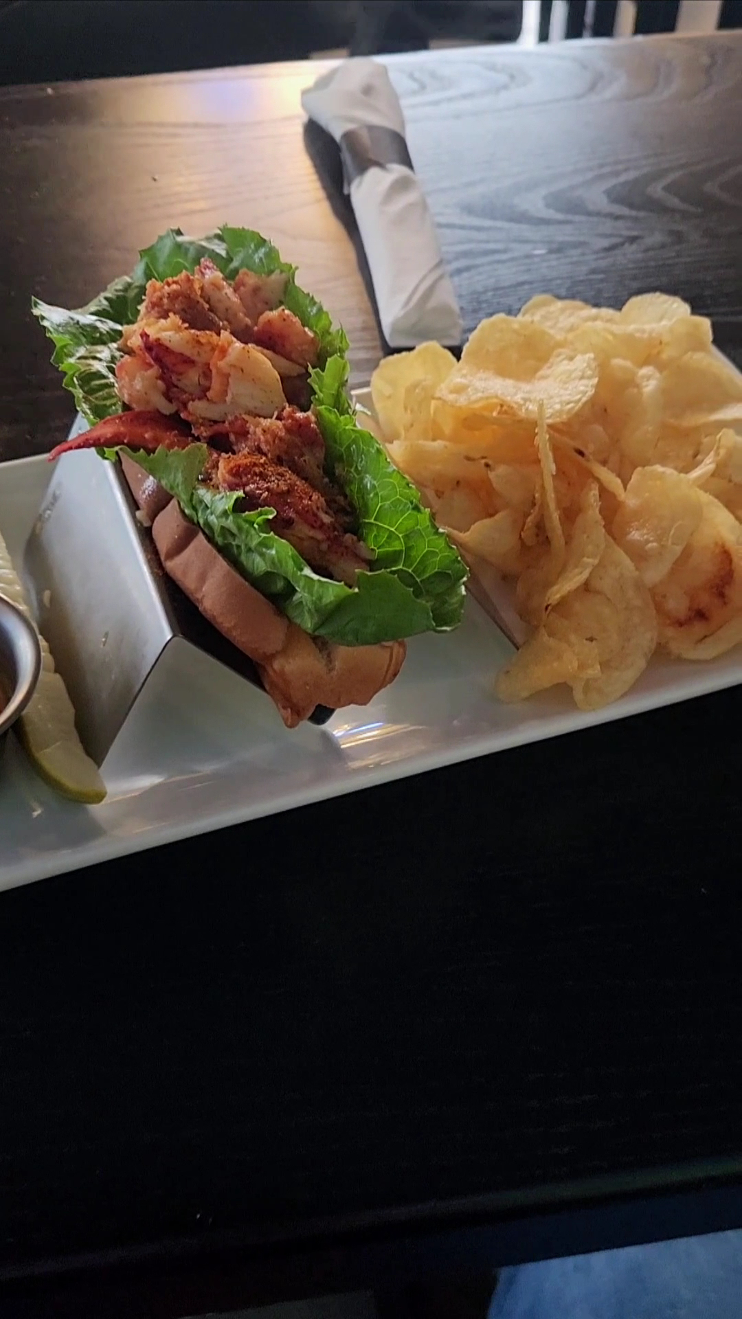 Very busy early afternoon stop. We where told seat ourselves and waitress was quick to ask for drink order. The menu was short with diverse choices. Seafood to hamburgers. We asked for recommendations and where guided to the seafood choices. Simple for us to choose the crab Quesadilla and the lobster roll. Sides where kettle chips and coleslaw. The atmosphere was sports theme oriented. Very friendly staff and appears to be a very popular place. The bartender was accommodating to TV channel requests. The food took alittle while to get. The presentation was impressive. The lobster roll was big pieces of perfectly prepared meat wrapped in Roman lettuce sitting on a hotdogs bun. The melted butter sauce had a slight spice that gave a good depth of flavor but the meat was so tender and moist that it didn't need the butter sauce. The kettle chips where very fresh and didn't leave a greasyness on your fingers.the crab Quesadilla was served with fresh guacamole and sour cream which so complimented a perfect dish. The flavors where perfectly combined for a unique take on a Mexican theme dish. The coleslaw was heavy on the red onions almost over powering the overall dish. Slaw lacked a creamy texture and was on the dry side. The coleslaw was the only weak component of a perfectly prepared meal. Value wish these choices where a great pick. The seafood was prepared with perfection. We really enjoyed the friendly neighborhood type of atmosphere and very happy and attentive staff. We would highly recommend and will return to try...
