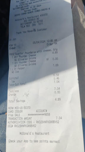 Read moreOkay. I never thought the day would come where I thought I would leave a review, little alone a positive review for a McDonald's but here I am. My son and I were done working for the day and was in the area, plus I had a Free Meal Voucher and decided to use it at this location. Best decision I could have made. The young man behind the counter seemed new but was polite and handled everything well and if he had a question, he asked the Manager nicely and the Manager handled it quickly and professional. My son ordered the 10 pc. which is a safe bet since they are good and I ordered the Big Mac Meal. Though $9.00+ I had the free meal so I went with it. When I opened it at my table I was in Awe. It was like a Big Mac in a commercial! Bun was golden and I could see the sauce on it. Then I popped it in my mouth like a Junk Food Junky and WOW! It was warm and juicy and very flavorful. So much sauce that it was dripping out! Fries were great also. My son chuckled because he knows that I don't get carried away much at a restaurant, little alone a McDonald's. Yes, this one was free but I would actually go back and pay the next time if they remain consistent. Also a nice plus was that they were wiping down tables and mopping floors while we were there and seemed to care about their store. That was just a nice addition. Especially these days. Kudos to this Duck Creek location. Yes! I took a picture and this is exactly how it looked to this guy who was having low expectations....