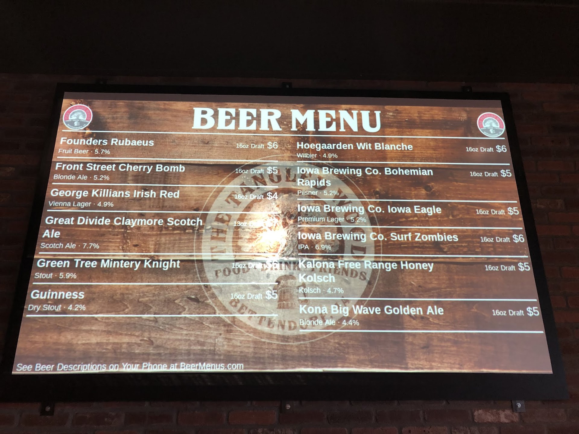Around this time (an hour or so after we arrived), two nearby tables cleared out and new customers arrived. They seemed to get their drinks very promptly and ordered. We had been there an hour and just got our drinks and our dinner order.