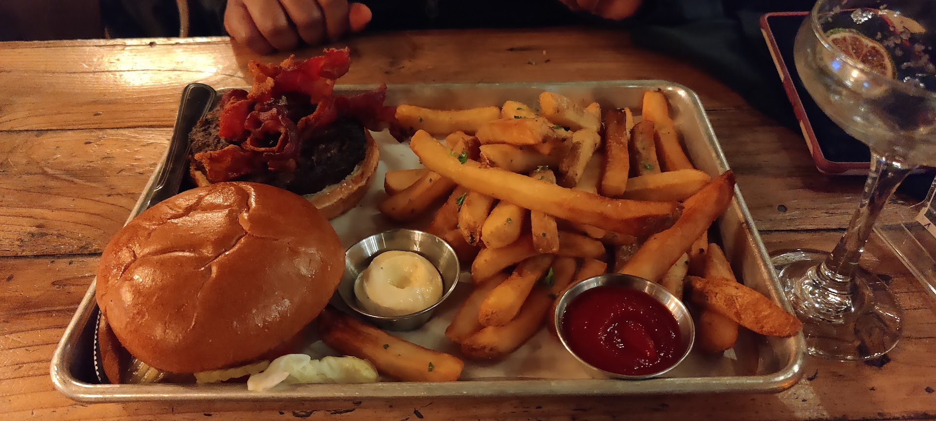For starters, we tried the carnitas tacos and gulf prawns. Both were really delicious. Do not forget to request for their hot sauce made in-house. After the first try at their food, it is when I was torn with deciding on the next food items we wanted to order. I contemplated between sticking with the Bar Snacks and ordering from the Main dish, since the entire menu all seem delicious. Our fantastic server Stephanee, got me convinced to try the burger. She was right! Burger was delicious as well. My wife had a Mac and Cheese with duck, she is not a regular Mac and Cheese eater but this one, she really enjoyed. In fact she ate the left-overs for breakfast. We were actually already full from the first round of food and struggled with the next round. I would normally try the beers but since I was driving I went for the suggestion of our server to try the Whiskey Baron. It was good as well! My wife ordered it too after she tasted it.