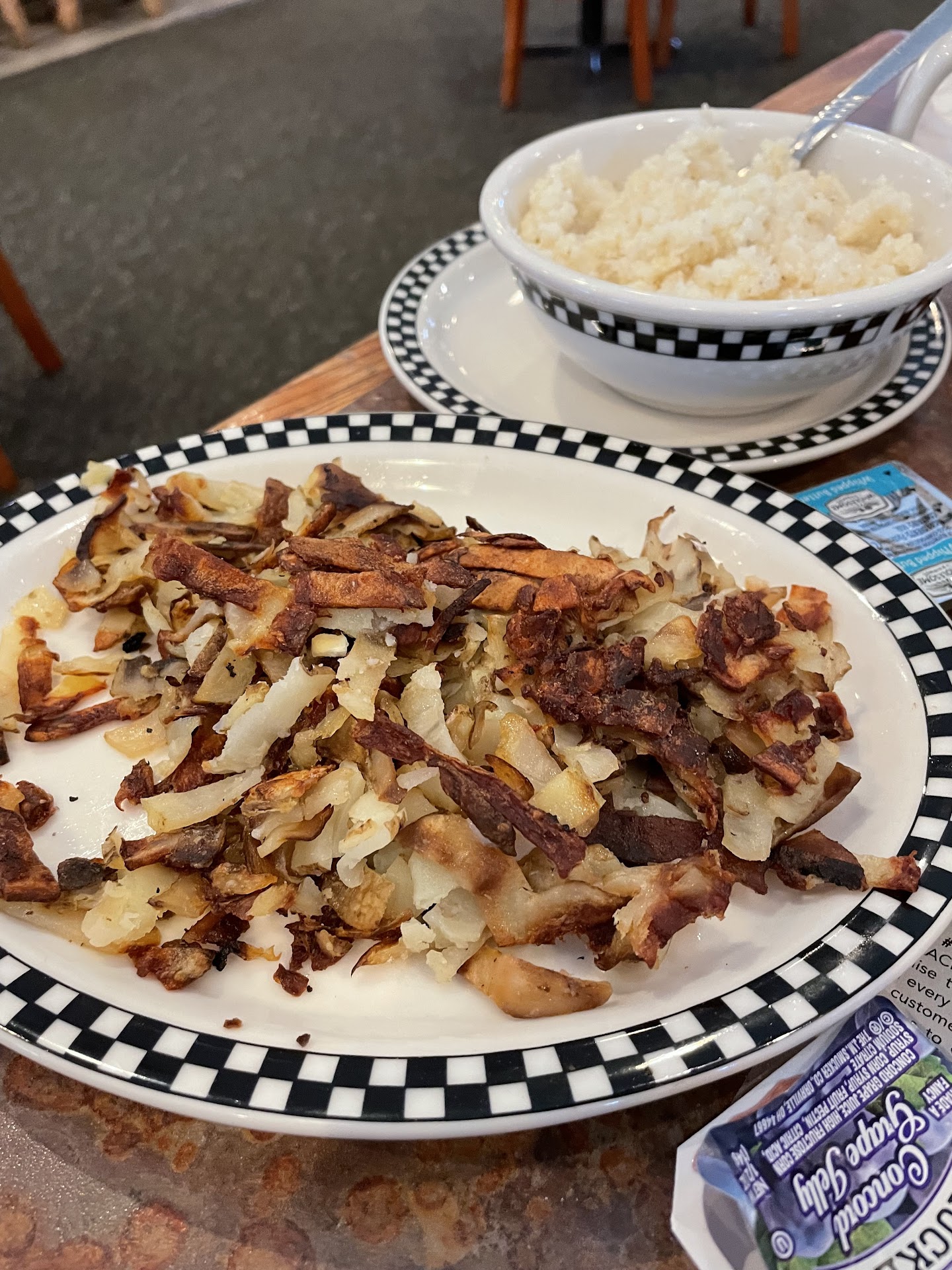 The food is great, definitely worth going, and we will definitely continue going back. In my photos you'll see a plate of hash browns - that is a SIDE of hashbrowns, so that gives you an idea of the portions. They definitely intend to send you home with a box or bag of leftovers, so you know you're getting a good amount of food...