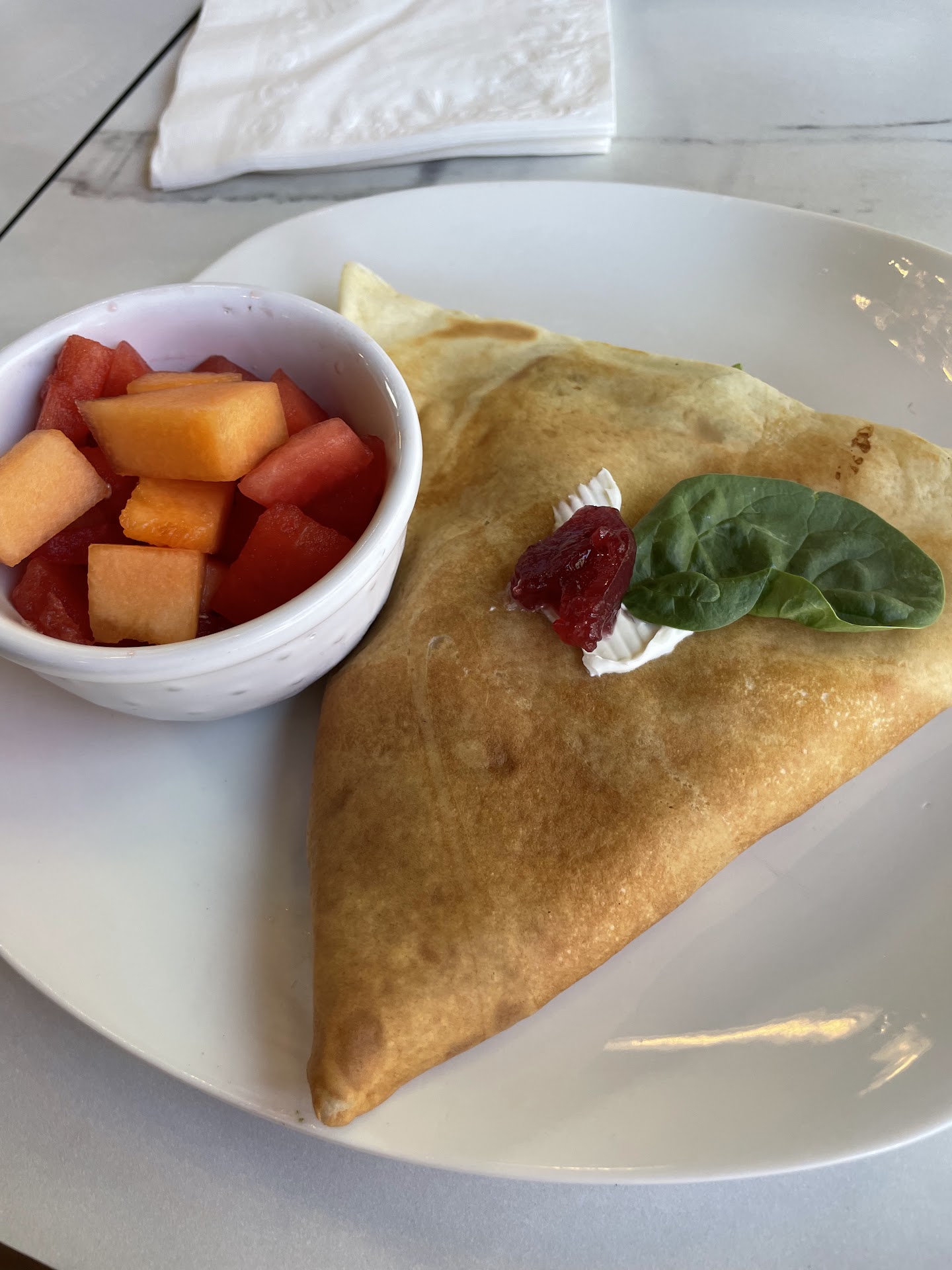 Pictured: chicken pesto crepe,...