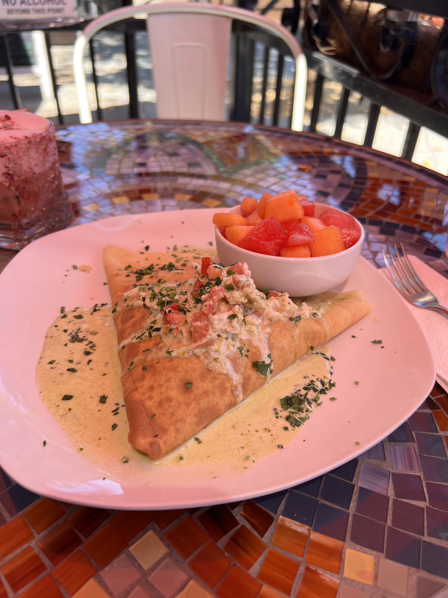 Read moreI can’t recommend this place enough. It’s a cute little bistro, perfect for brunch! The drinks are unique and delicious, they offer some alcoholic/non alcoholic, and espresso based drinks. The food is phenomenal. I recommend the chicken pesto crepe. 🤤 The thing that stood out the most though was the service. Everyone was SOOO incredibly nice. This is a walk up order at counter and take ur number to your seat place. I sat out on the patio with my dog. They brought my food and drink out quickly. Then came out multiple times checking if we need anything. They even stayed for a couple minutes just to ask about my dog and to talk to us. thank you for being he Incredible experience. The reviews are real for this place. I will definitely be back!