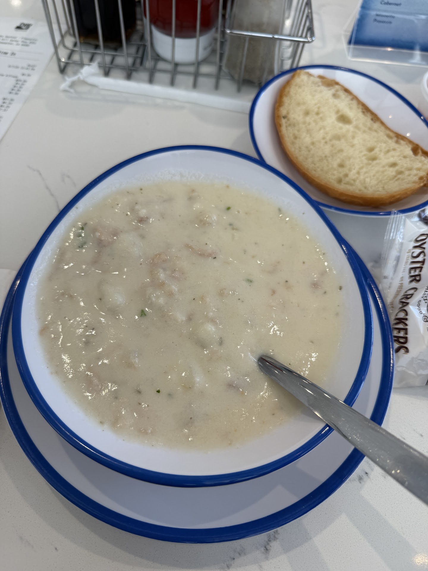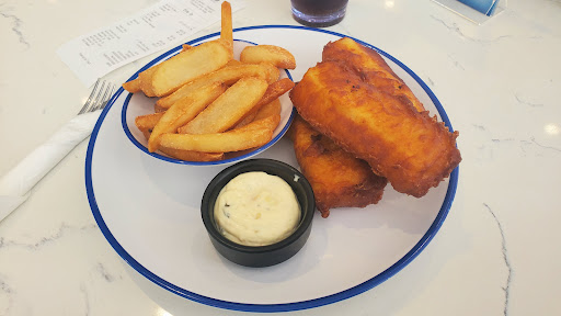 We each had the one piece cod and a cup of clam chowder. Maybe things have improved since some of the earlier reviews, but our food was good, and hot. The cod was tasty with a good batter. The fries were crisp and stayed that way. The clam chowder was good. Maybe not the best I've ever had but it was good enough. The bread that was served with the chowder though! Acme bread, yum!