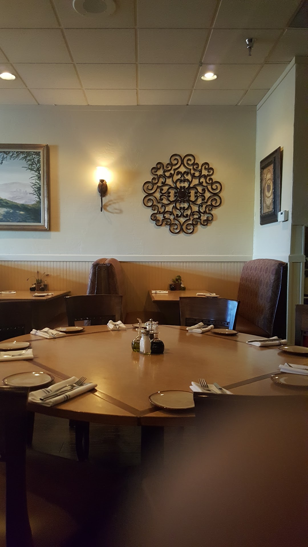 Stopped in early on a Tuesday night, about 5:30. Hostess seated us at a booth at the back of restaurant near the kitchen, but nice enough anyway. I went to wash my hands: Bathroom was exceptional, spotless and beautiful!