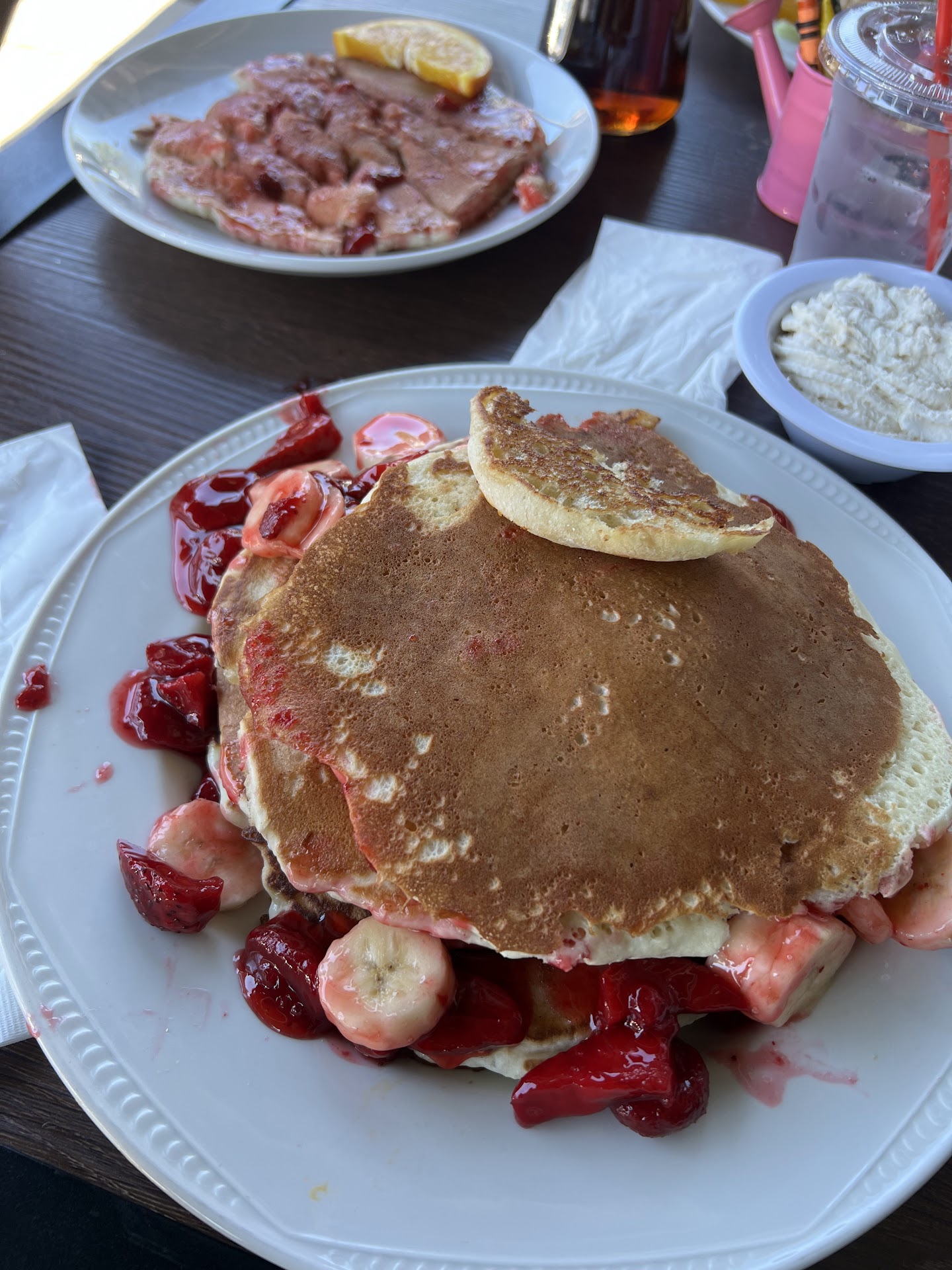 The savory egg chorizo was delicious, perfectly capturing the essence of a good brunch. While the full stack pancakes were a bit of a letdown due to the canned strawberries, which seemed out of place in such a nice restaurant, the overall meal was enjoyable.