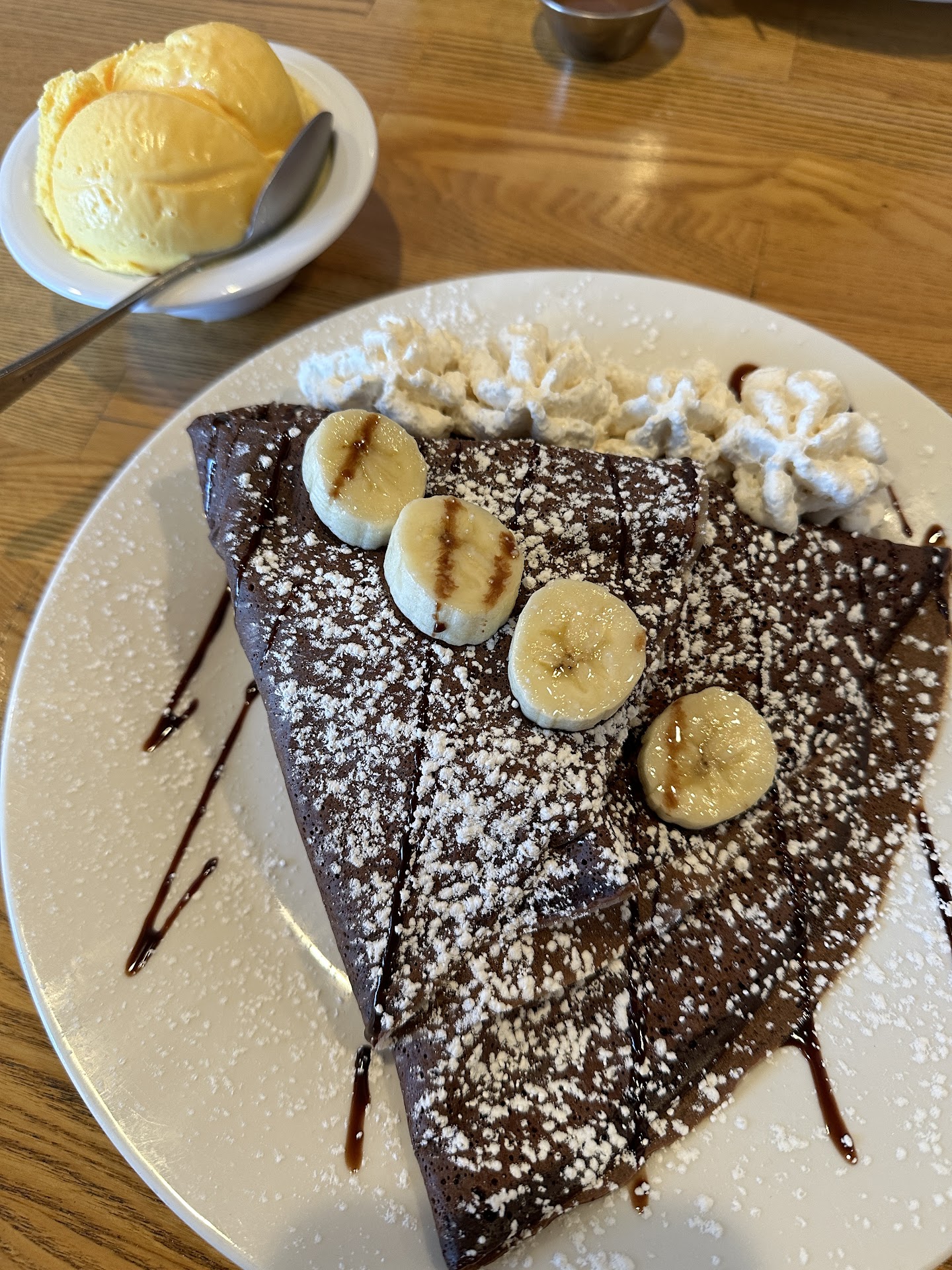 Read moreWhat a great hidden gem in Pleasanton. My daughter and I made our first visit and we were more than satisfied. We were greeted very kindly and friendly by Carlos, who brought us water right away infused with lemon and cucumber. He answered all of our questions as we decided on both a sweet and savory crepe. The savory option we choose was turkey, Mozarella and spinach. All the flavors blended so well together and the crepes texture was ideal to withstand the large amount of food. Carlos, brought us out an extra plate as he knew we wanted to share. He didn't miss a beat throughout out visit. He was very customer service oriented!! Our sweet option was another excellent choice. Strawberry and chocolate with whipped cream. We were extremely pleased with the service provided us, along with the taste and quality of the food. We look forward to returning and trying many more options. This was a...