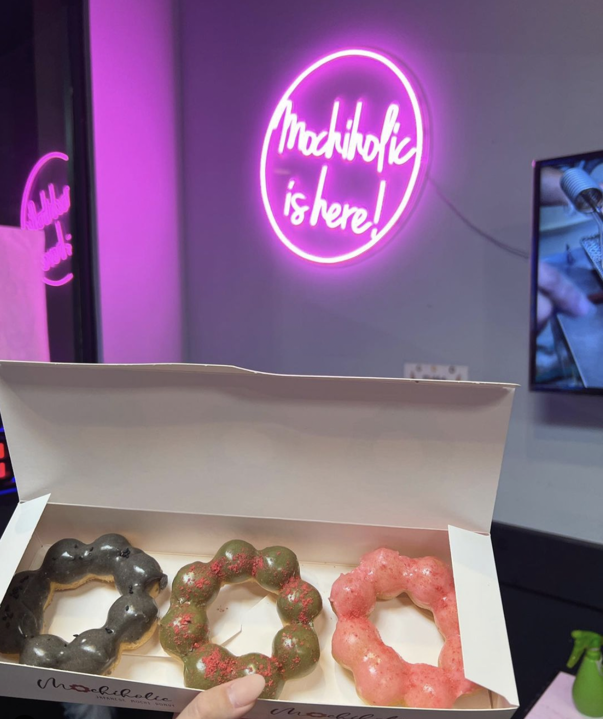 Read moreI've heard so much about these mochi donuts and thanks to Yelp's Elite event I was finally able to try them! The moment you walk into Mochiholic, you'll be greeted by the friendliest staff! Everyone here is so cheerful and helpful. It took only a few minutes to prep my order and I would have gladly waited longer for what they handed me - the cutest holiday box filled with 6 seasonally-decorated, mochi donuts. And, they were warm! The best part about Mochiholic, is that you'll receive your donuts fresh and made-to-order! Mochi donuts have a chewy texture that is best experienced when warm, but their freshness will last about 2 days. So YES, you can take them on that road trip. ;-) You'll also receive a cute holiday to-go box and you'll be supporting a local business.
