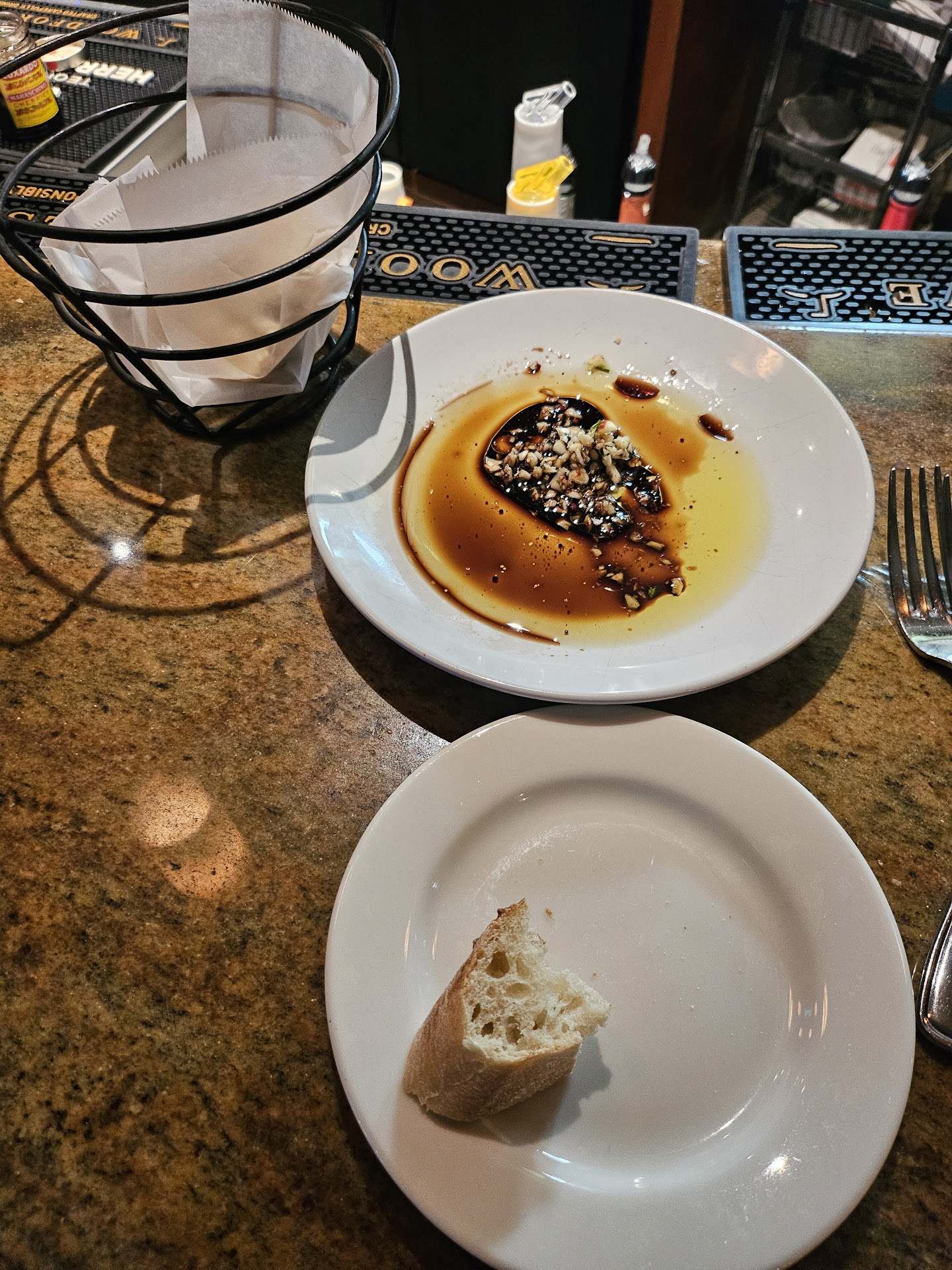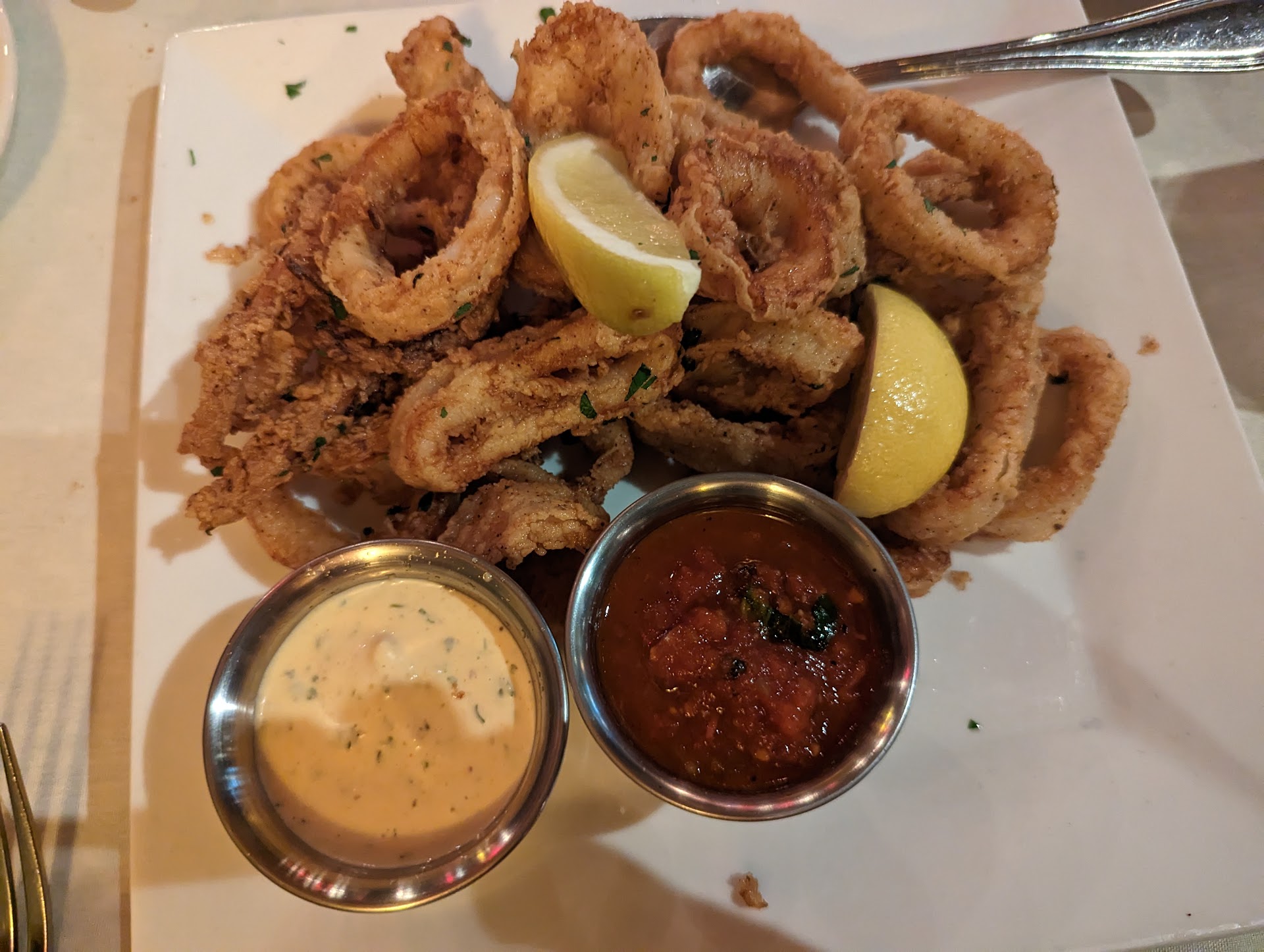 The complimentary focaccia was served cold and the sauce had way too much vinegar to oil ratio. We did like the garlic addition to the sauce but it was raw so a little harsh to eat the actual garlic pieces.