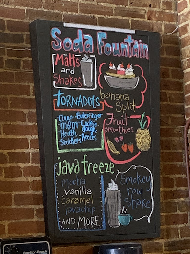 Nice place to have a meal or just to spend time with friends. They have a coffee bar menu and a good food menu and food was good. Lots of historic pictures of the town to looke at and some shopping in house, a bit pricey though. I would have loved to purchase a Smokey row sweatshirt or tee shirt and ball cap but at almost $ 40 it was above what I was willing to pay. This place has a small home town feel, and very nice people. Lots of on street parking with handicap parking. A definite place to visit with a small group of frends and family. We had 14 in our group. Will definitely make the trip from Pleasanthill to Pleasantville to enjoy there...