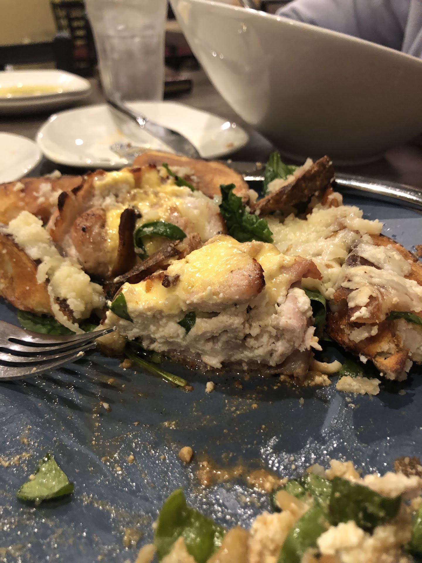 We decided to splurge a bit for our anniversary and you usually cant go wrong with Italian. We got there and everything seemed fine. The waitress brought our drinks and took our order, no problems. But after we got our drinks the waitress disappeared for about an hour. Tables next to us that had arrived after us at this point were getting their checks (different waitress). An hour later our waitress did come by and asks if everything is alright. We asked if it was going to be much longer as we had somewhere to be and had not gotten the appetizer, soup & salad, or entrees. She said she was sorry and it should be soon.