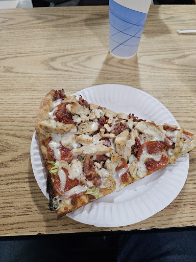 The pizza is incredibly delicious, the crust is crunchy and load bearing so It won't droop if you put a pound of meat and veggies on your slice. I ordered by the slice and the lovely lady behind the counter reheated it in the stove and my pizza came out looking and testing fresh. They have some pretty crazy looking combinations available, but they are worth trying, I belive my slice had lettuce on it.