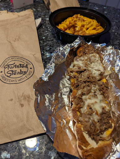 What in the twisted steak is going on! This place is a gem! Let me start with the service. The staff is amazing. So unbelievably nice and sweet. You know when you think you you’re a regular or known the place for years! It gave me that vibe and I was here for all of it. Now the food! Boys, girls, and they/them’s the food. Now for this boy who is watching his shape. I made the executive decision that day would be my cheat day and boy was it worth it. I had the twisted burger with mushrooms and onions and the cheese fries. Let me tell you when I say fresh and worth the short wait. The wonderful lady, who’s name escapes me, so generously brought our food nice and wrapped up, like little silver nuggets of goodness. At this point I stopped paying attention to the folks around me. Like when you use the blurred feature on your phone. As I peeled back the foil I started seeing gold. Melty, delicious, gooey, cheese coming out of and saying hello. Then you see that juicy, well prepared burger being hugged by what I can only describe as the best pretzel buns I’ve ever had! The salty. The crusty and buttery of it all really took it to the next level. Everything we ordered looks amazing so what are you waiting for. Your burgers and cheesesteak is getting cold. Go...
