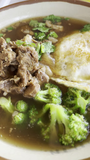 Just a little cafe area that serves many businesses in this building. I am good with that. They have chop sticks but only disposable small spoons. The bowls of soup are reusable. Having some nice to have some nice soup spoons that are reusable too. They have chili oil, vinegar and soy sauce in bottles which is nice. The chili oil and vinegar were almost empty when we were there which was shortly after they opened for the day.
