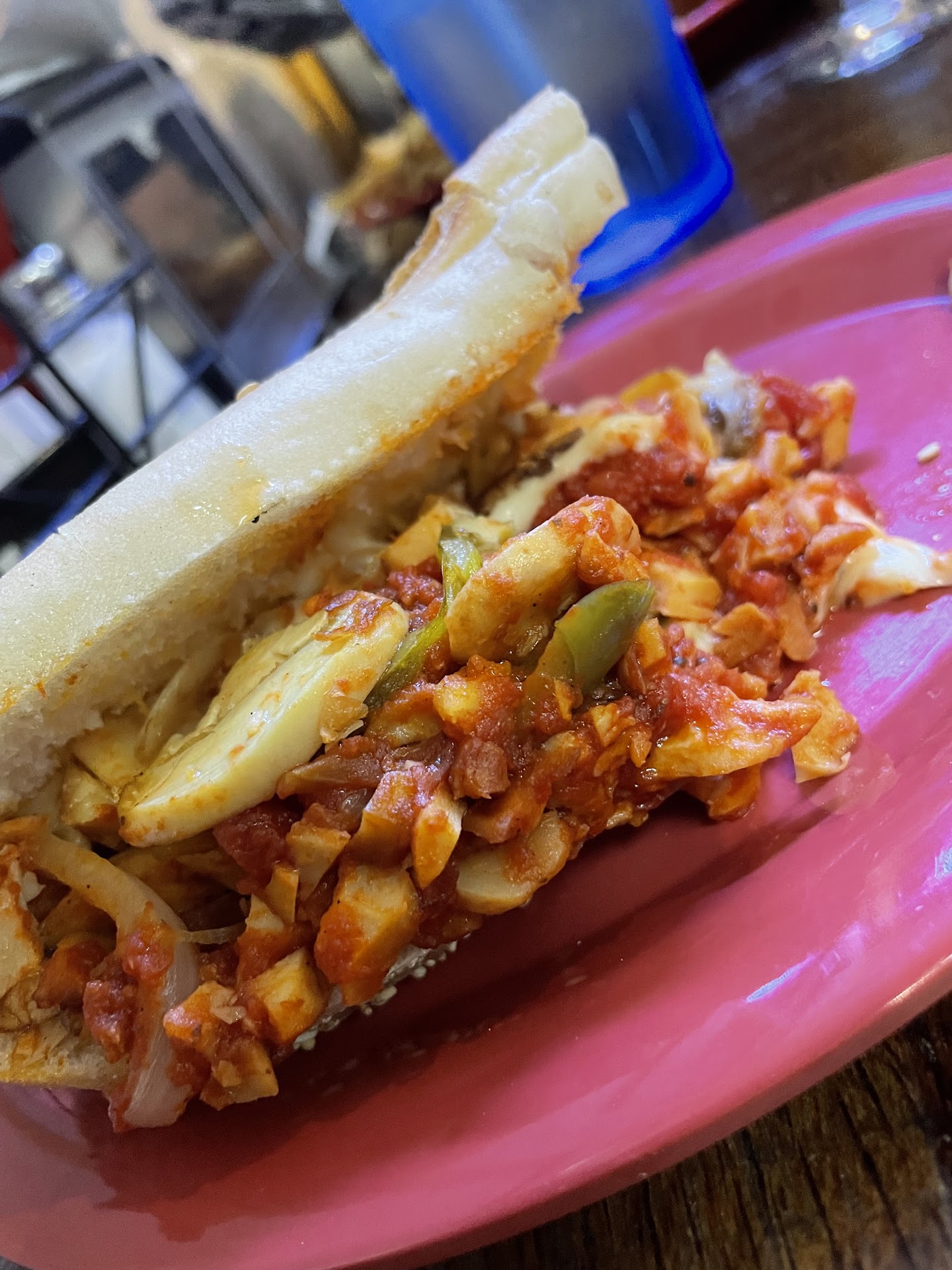 There are good takeout options, access to takeout containers in the dining room, refillable drinks @ soda station, and even a coffee machine. Be warned that if you dine inside, you'll spend about 5 minutes throwing away your food into a tiny trashcan hole. It's likely that patrons kept throwing away serving trays and FWOT's owners were tired of it, so now you can't even fit a serving tray into the trash if you tried! đ