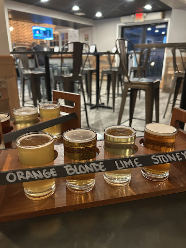 This brewery has potential… but there were definitely some things throughout the night that were off. We walked in at 7:30 pm on a Saturday and no one was inside… except for two chefs in the back and 1 waiter. There was no music so it was silent and the tv was on mute. Odd for a restaurant at night on a Saturday .. It seemed like they were closing early? Nonetheless we sat down. The tables are almost like the ones you see in a pizza shop. Not comfortable seating… we ordered the mozzarella wedges. So they were definitely frozen and reheated. They tasted like the frozen ones from a grocery store (they probably grabbed them from giant). Would not recommend that appetizer. I ordered a flight of beer because I wanted to sample some IPAs, the beer was good! If you’re looking for an exciting atmosphere, this is not the place. It would make a huge difference if they maybe got different tables and hung up some art work or some aesthetic wall paper. And definitely play some music on the speakers ?? I’ve never been to a...